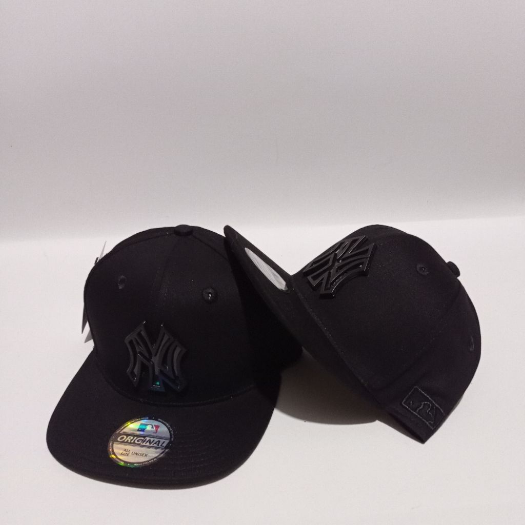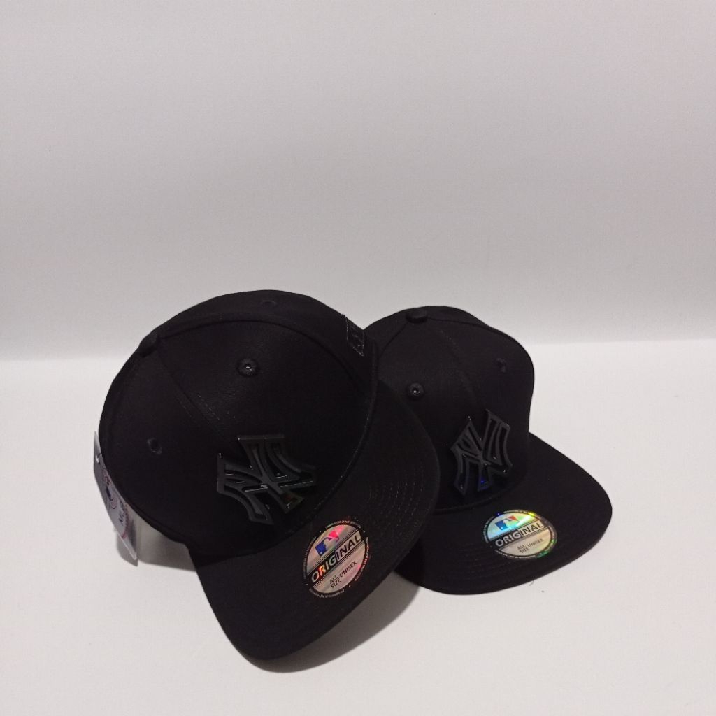 Topi Snapback Original Import NY/ New York Black On Black Metal Stack Baseball Cap Distro Fashion Pria Wanita Hip Hop [ ]