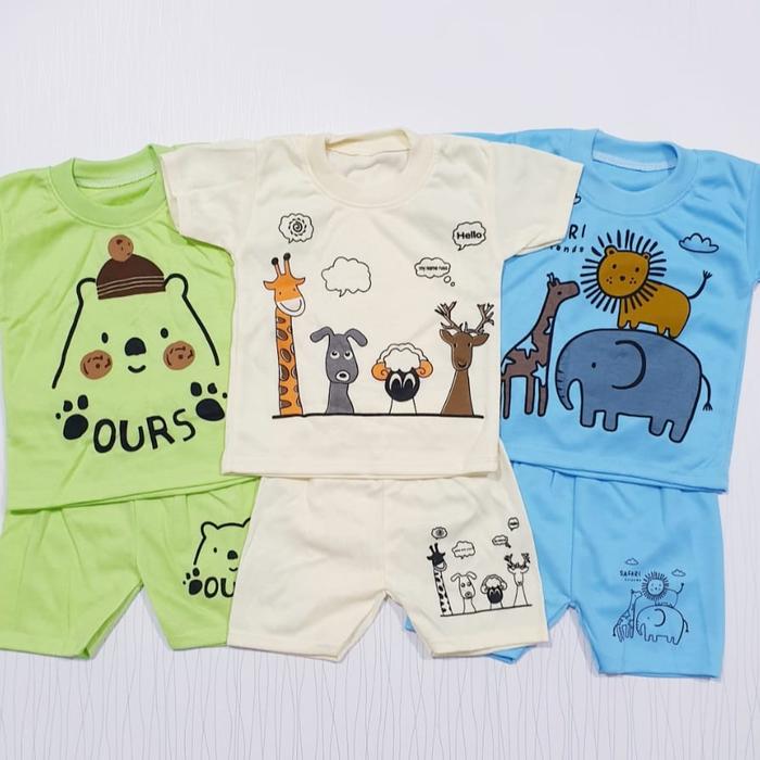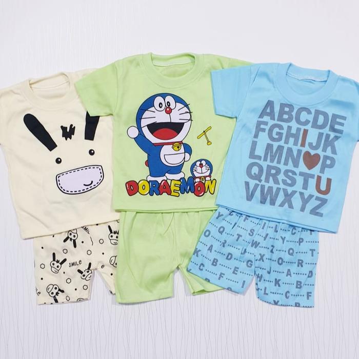 Paket Isi 3 Setelan Obong Anak Bayi 0-12 Bulan / Baju Oblong Anak / Baju Murah Bayi / Baju Baby Gracia / Kaos Oblong - S