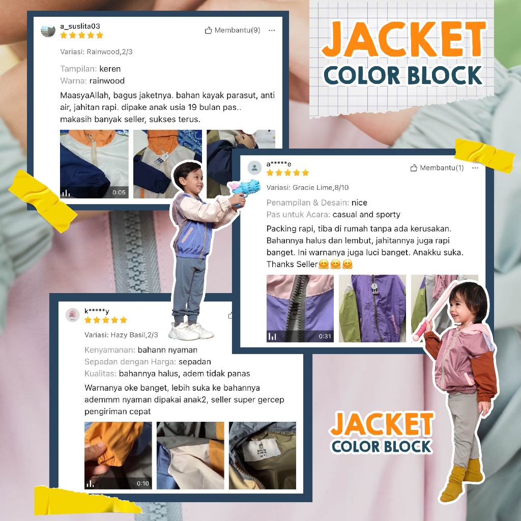 Maison Elmesa Jacket Color Block - Size 8/10Y Water Repellent, Bisa Tambah Nama - Jacket Anak Parasut