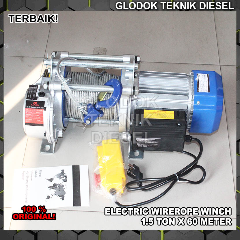 Electric Wire Rope Winch Hoist 1.5 Ton x 60 Meter 1500 KG 1 phase Wirerope ORI