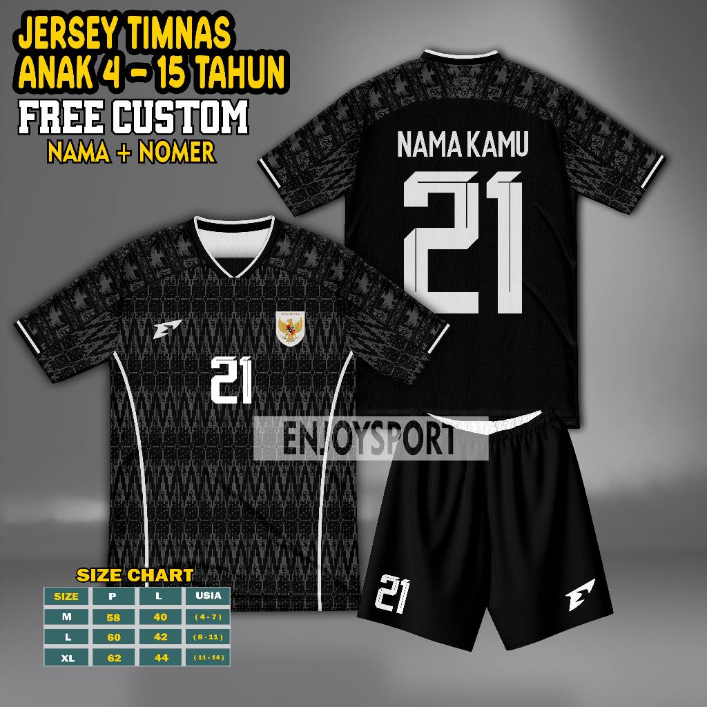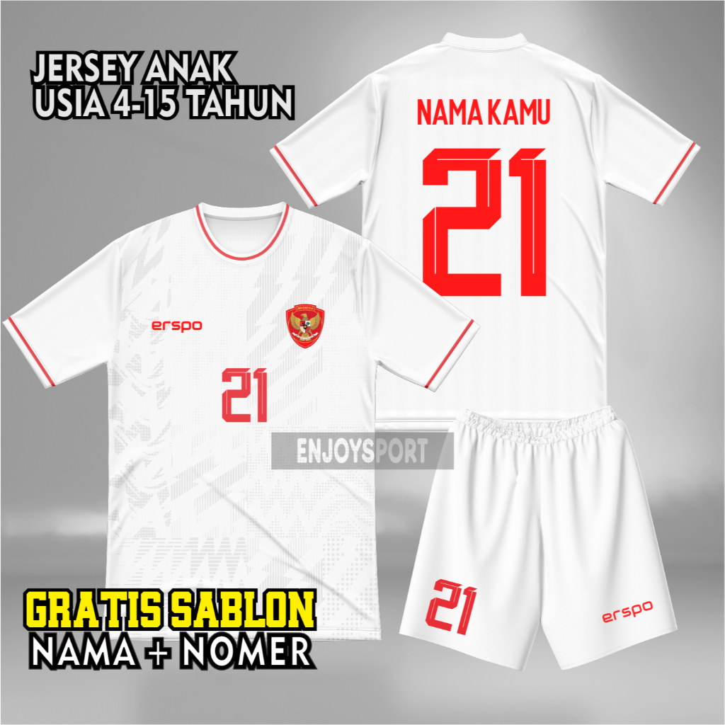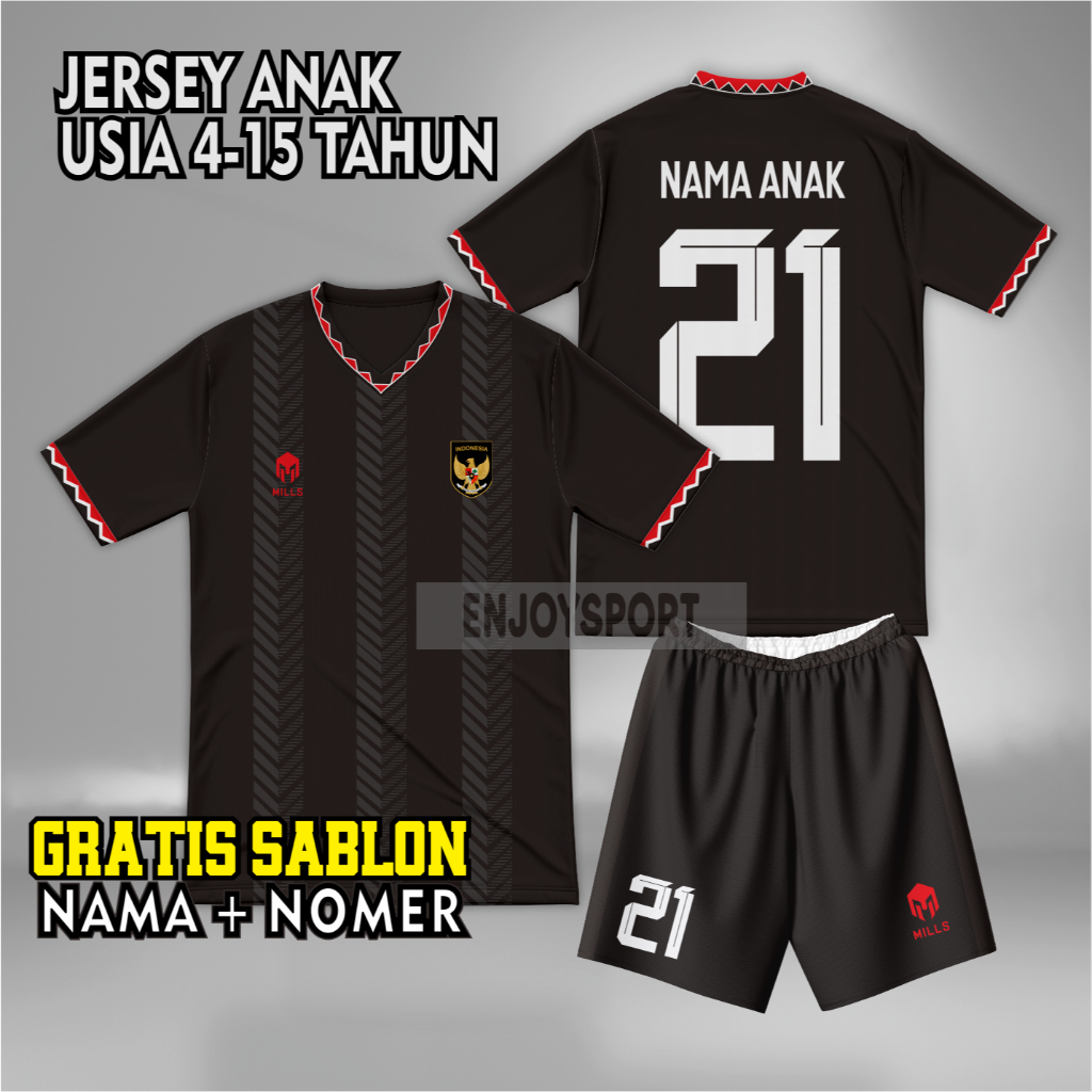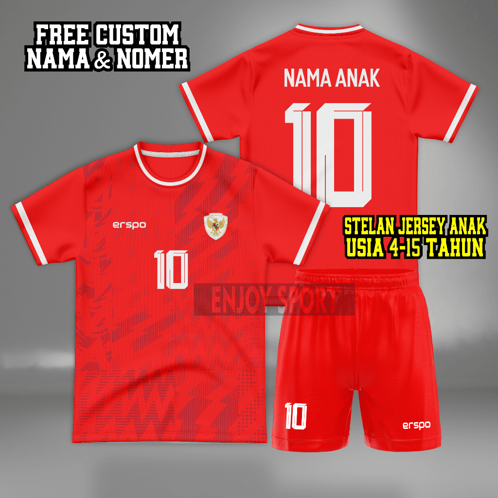 Jersey Timnas INDONESIA Anak FREE Custom Sablon Nama + Nomor Punggung, STELAN Baju Bola Anak - Anak