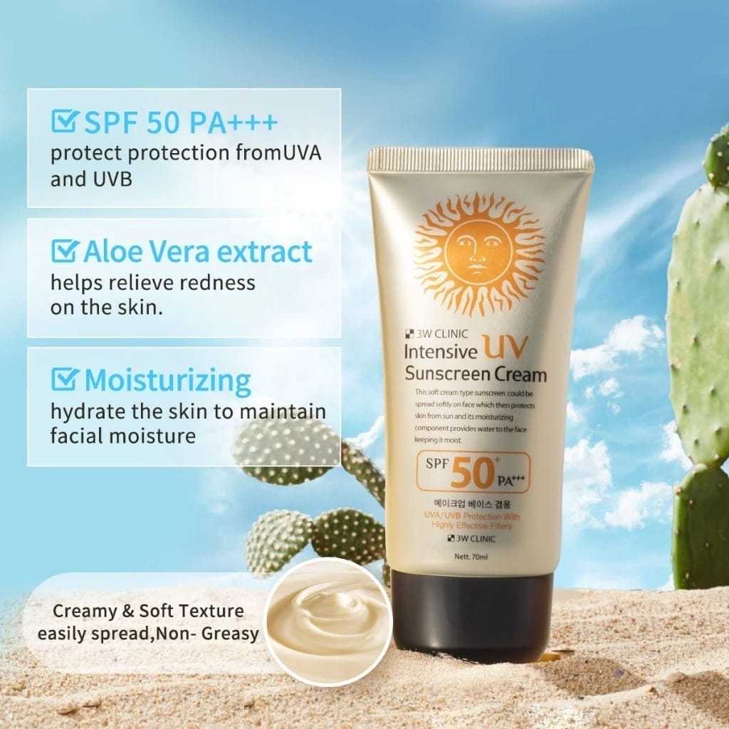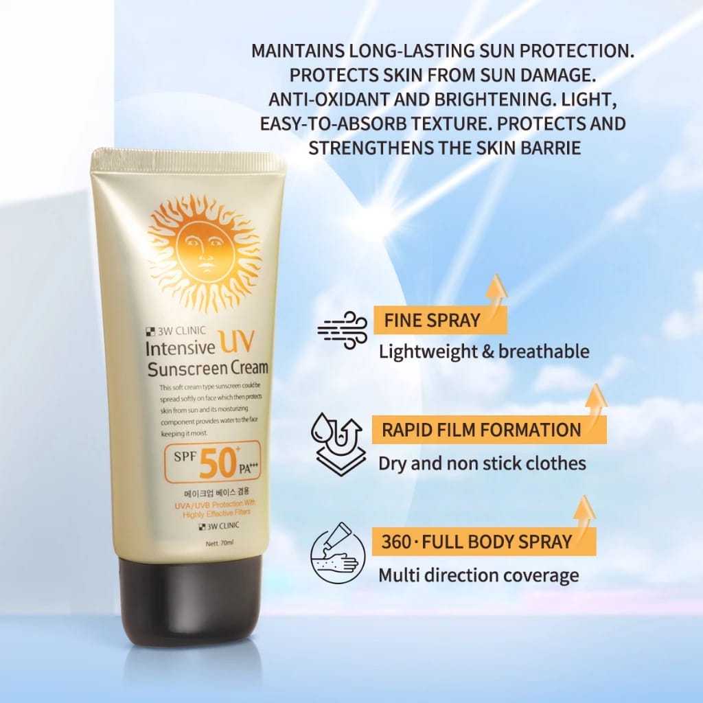 READY STOCK [ORIGINAL + BPOM] 3W Clinic Intensive UV Sunscreen Cream SPF 50+ PA+++ 70ml Original Sunscreen Sun Cream Kor