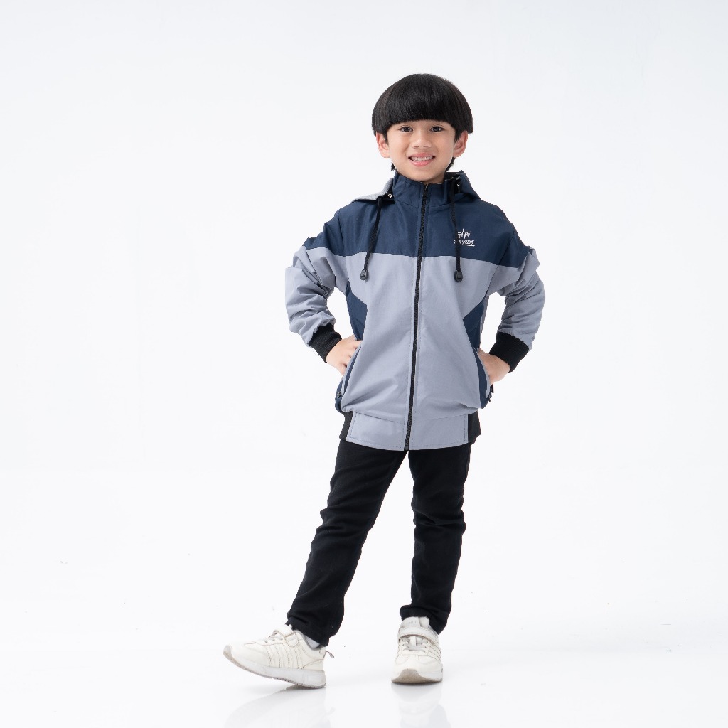 Jaket Bolak Balik Parasut Anak Anti Air Usia 3-14 Tahun Waterproof Windbreaker Bahan Taslan Premium