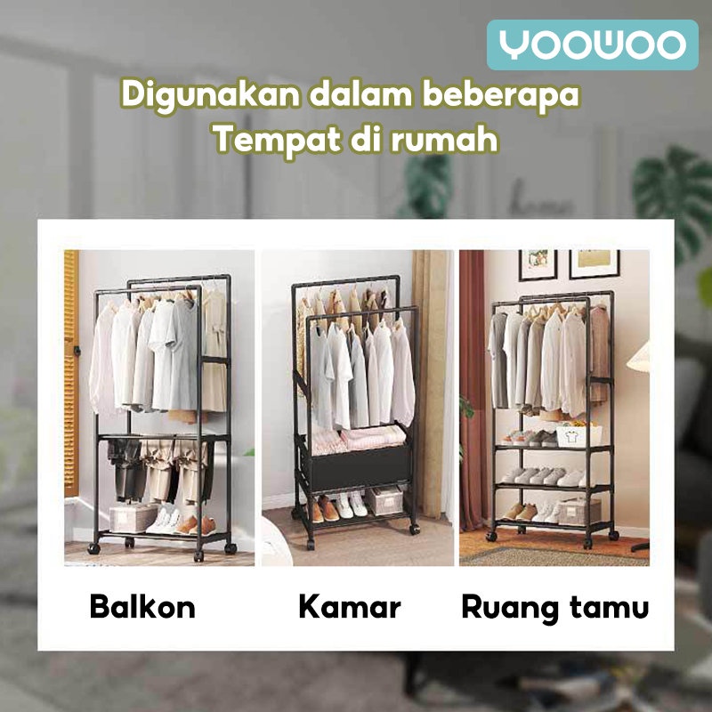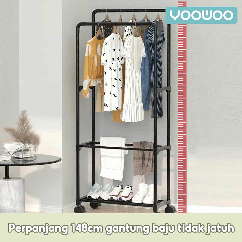 YooWoo rak gantungan baju / stand hanger / Gantungan Baju Besi Dinding Kamar Estetik