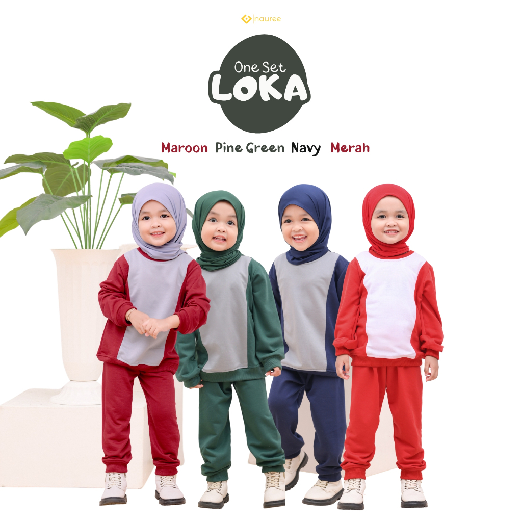 Nauree - Loka One set setelan baju olahraga anak laki perempuan unisex 1- 8 Tahun jogger sweater
