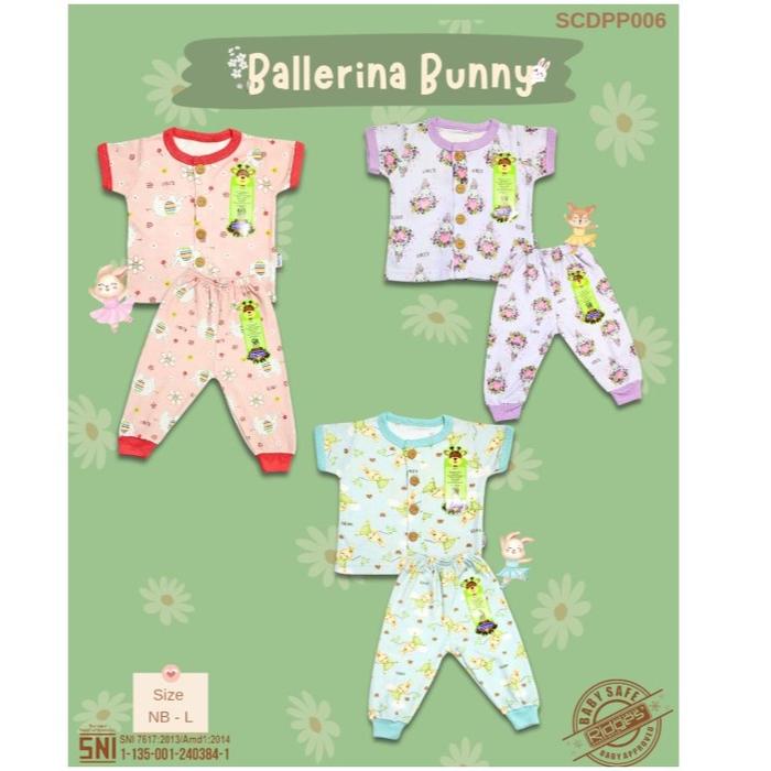 Ridges | 3Pcs Setelan Anak Bayi Kancing Depan | Size Nb.S.M.L Katun - Ballerina Bunny ( Cpr ) , Xs