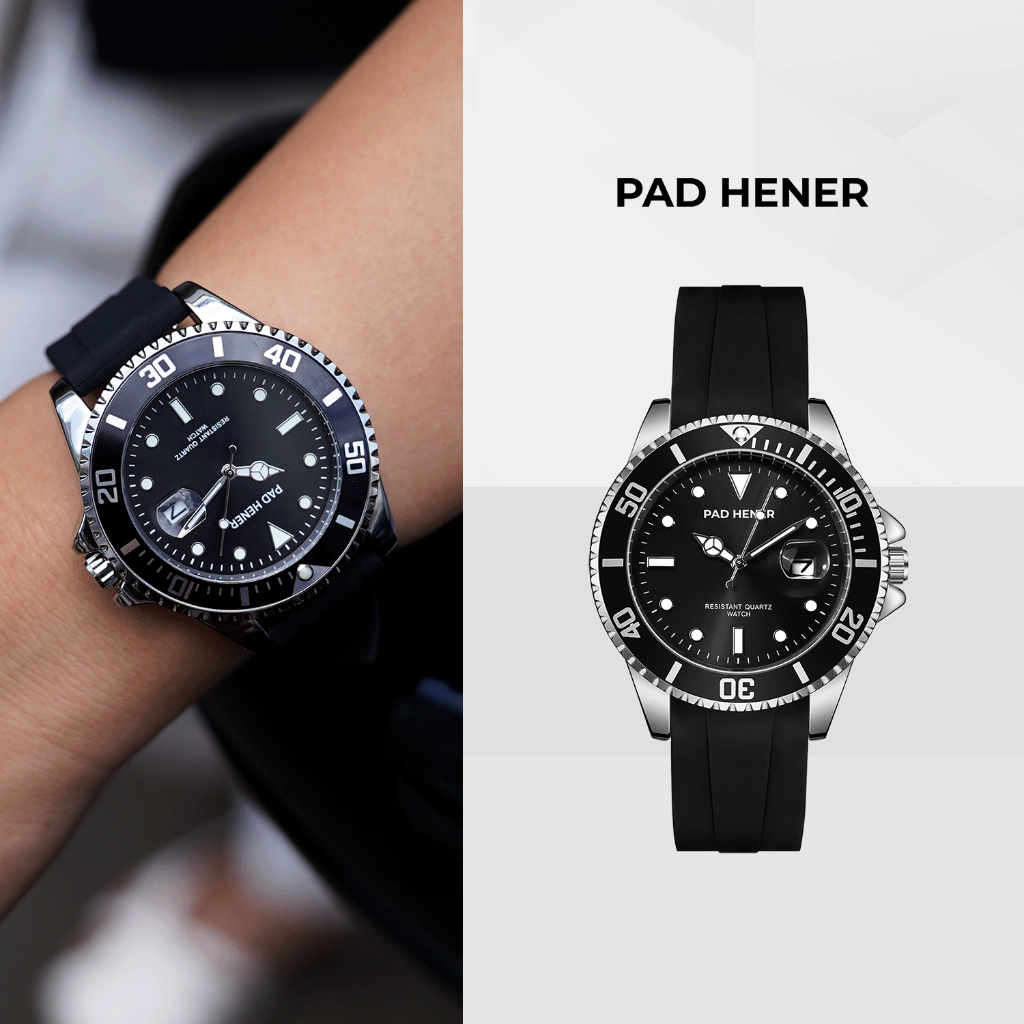 PAD HENER Sky Master Black Rubber Water Resistant Jam Tangan Pria Analog Original