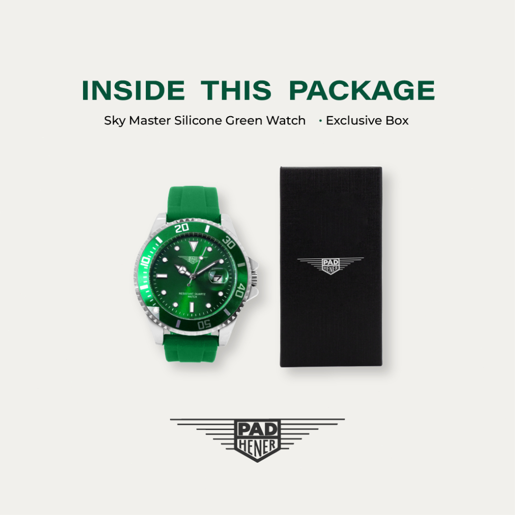 PAD HENER SKY MASTER Green Rubber Jam Tangan Unisex Analog Original Water Resistant Tanggal Aktif