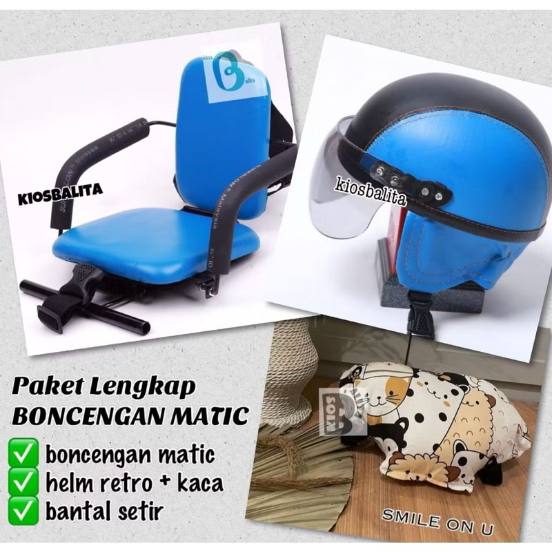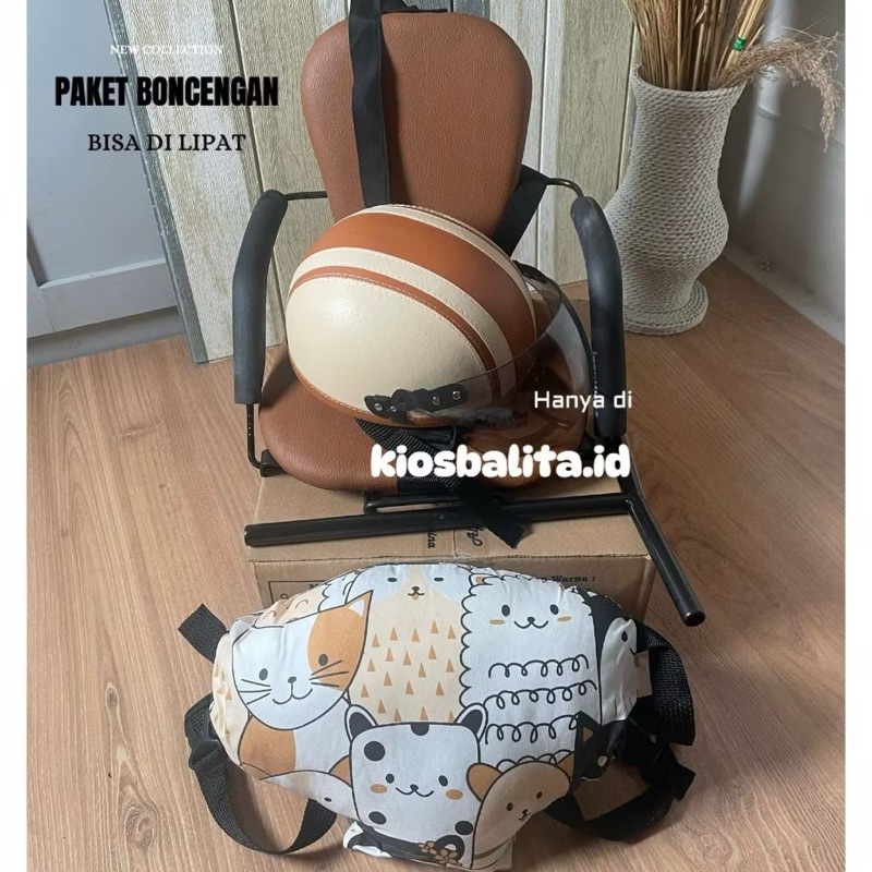 PAKET LENGKAP KURSI BONCENGAN MOTOR ANAK MATIC + HELM RETRO + BANTAL SETIR