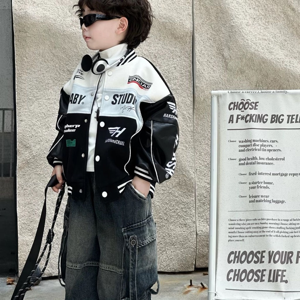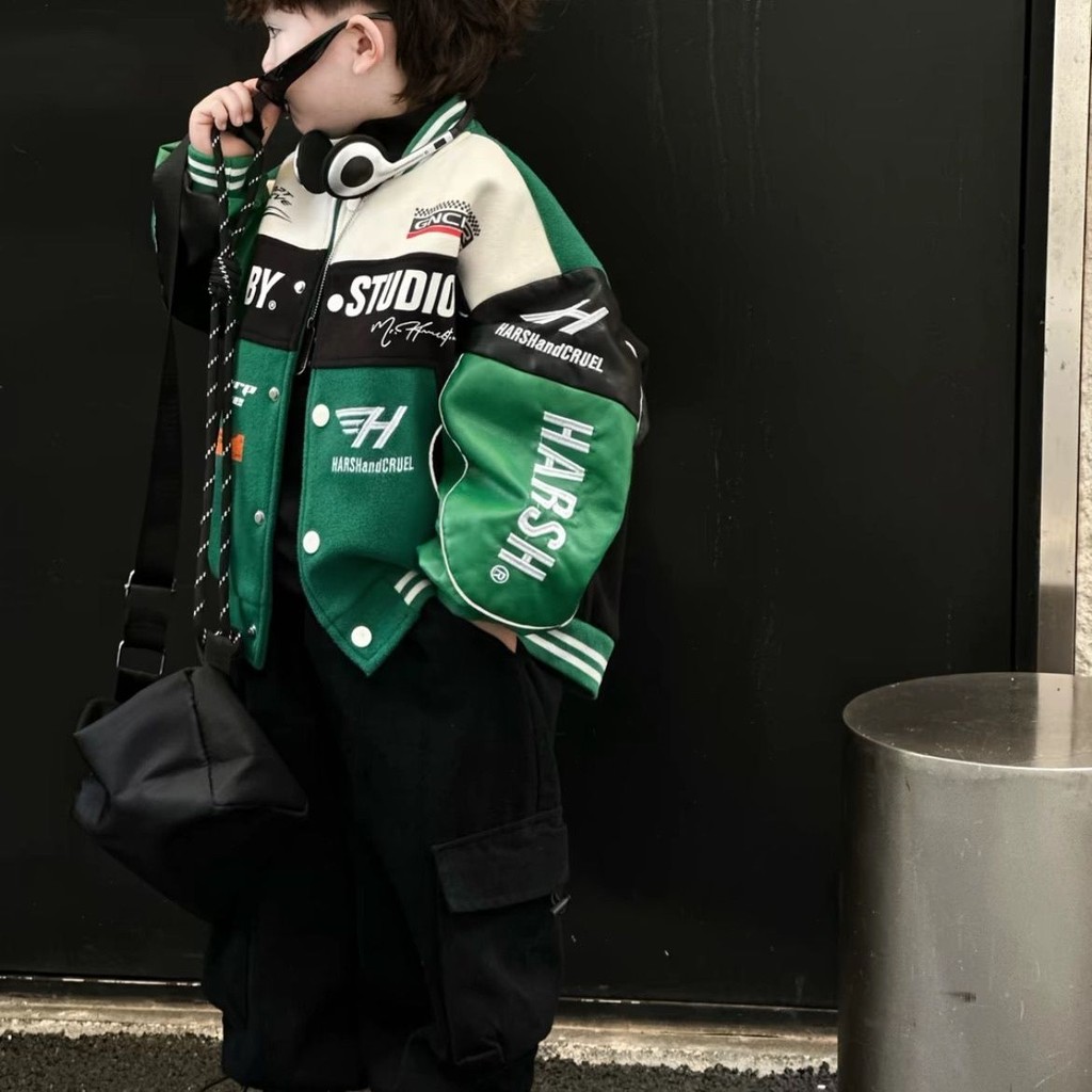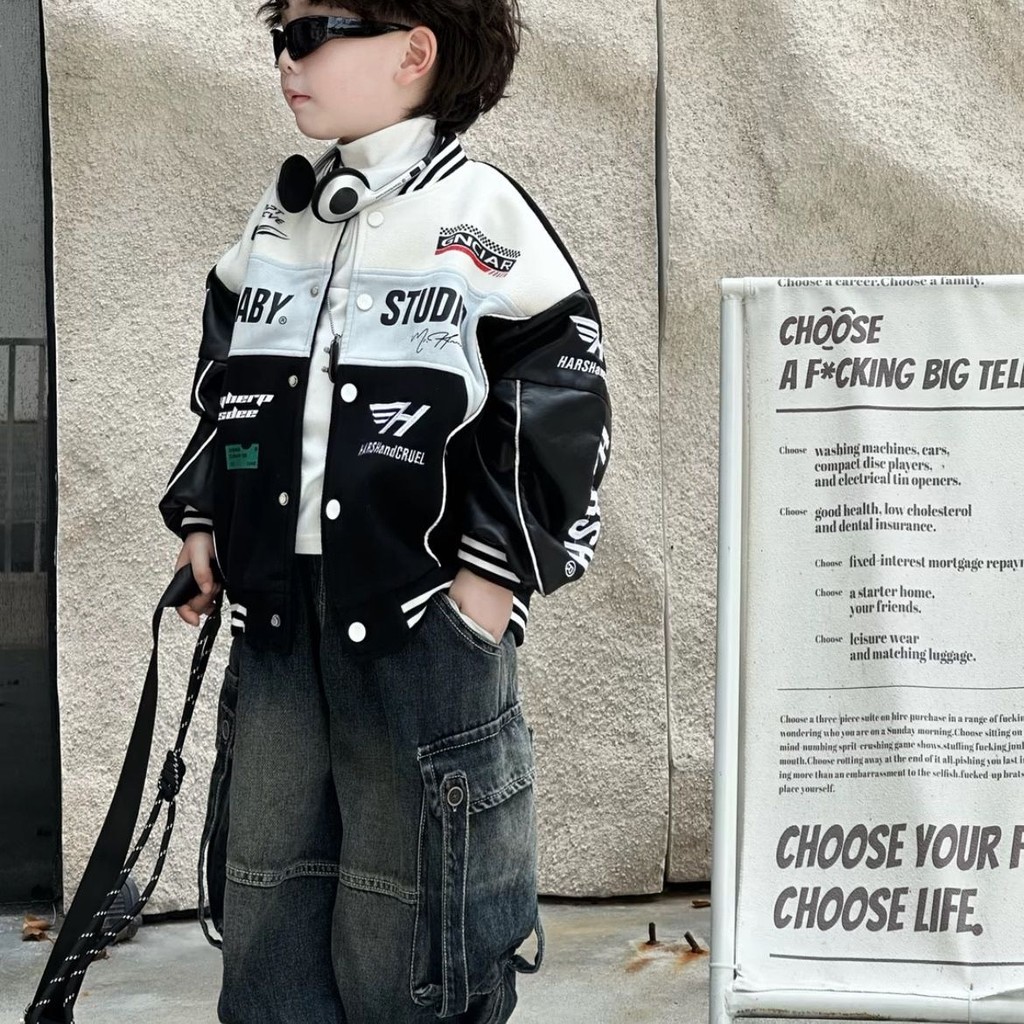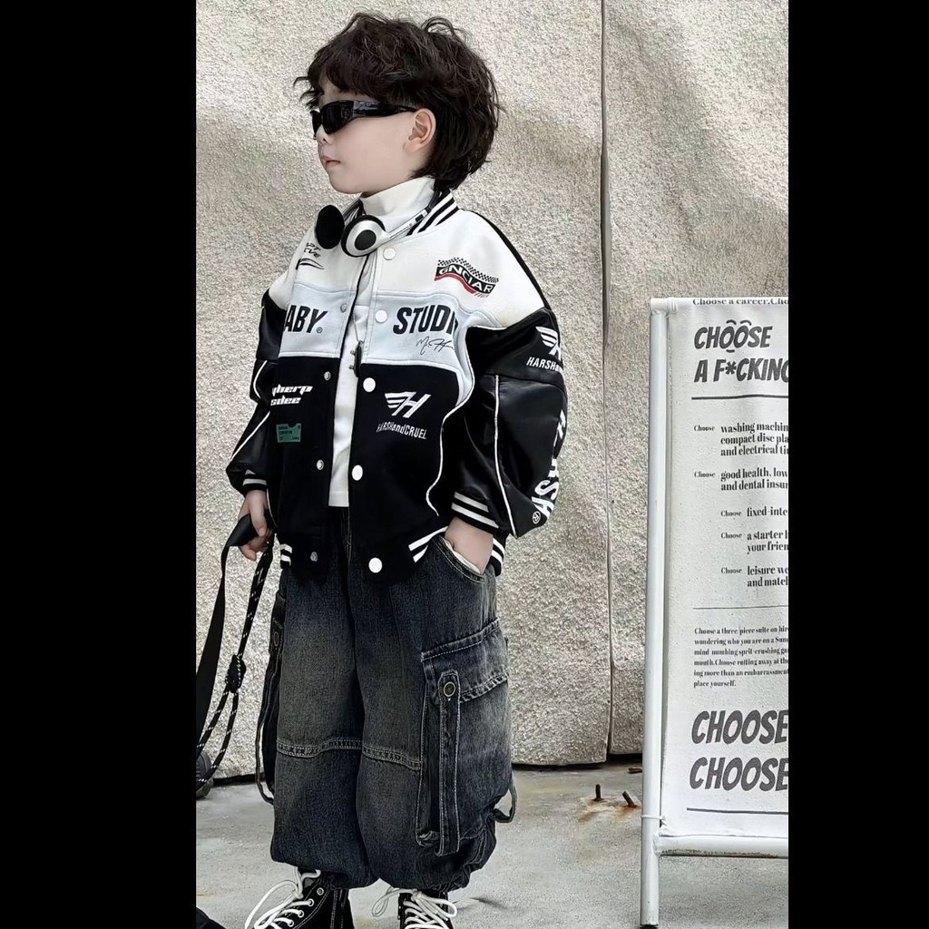 Setelan Seragam Bisbol Anak Laki-laki, Setelan Jeans Longgar Gaya Korea, Warna Jatuh