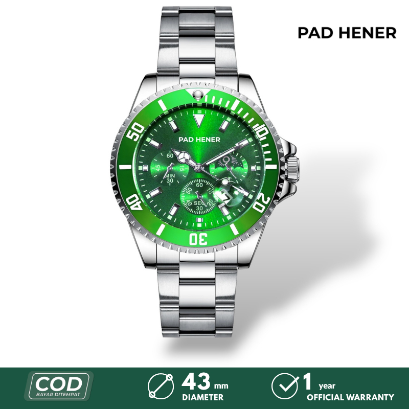Jam Tangan Pria Wanita Pad Hener Sky Master Hijau Stainless Steel Anti Air Original + Kotak |