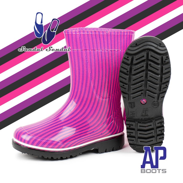 Sepatu Boot Anak AP BOOTS 2012 FUXIA STRIPE - Sepatu Boot Karet Anti Air & Slip Ringan Nyaman Lentur