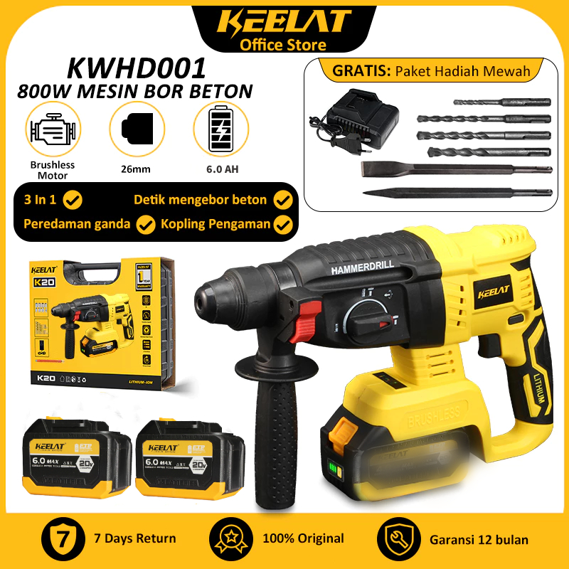 KEELAT KWHD001 6.0AH PALU BOR TANPA SIKAT 800W MULTIFUNGSI PAHAT LISTRIK BOR IMPACT BOR BETON TEMBOK EFISIEN TAHAN LAMA