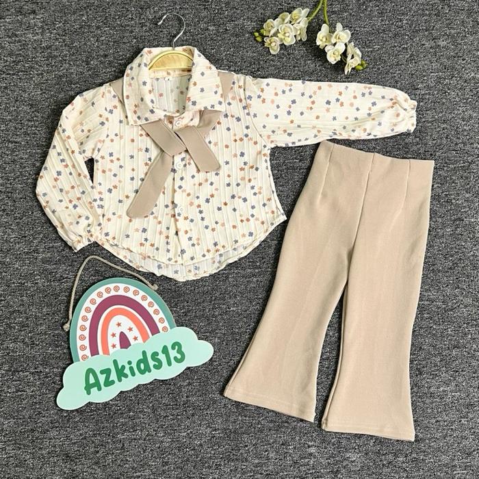 Oneset Lorenza Koreanstyle 2-10Thn Anak Perempuan Celana Cutbray Highwist Fashion Cewek - Cream Late, 2-3Thn