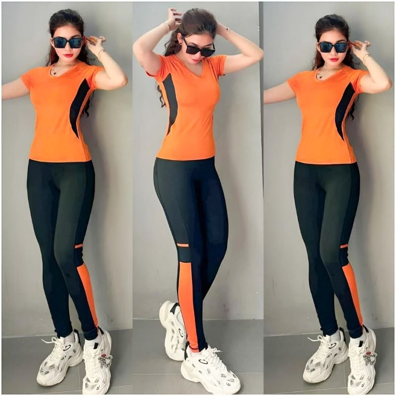 SETELAN BAJU SENAM WANITA AEROBIC TERBARU Setelan Baju Senam Aerobic Zumba Gym Fitness Yoga Set kaos dan Legging. atasan
