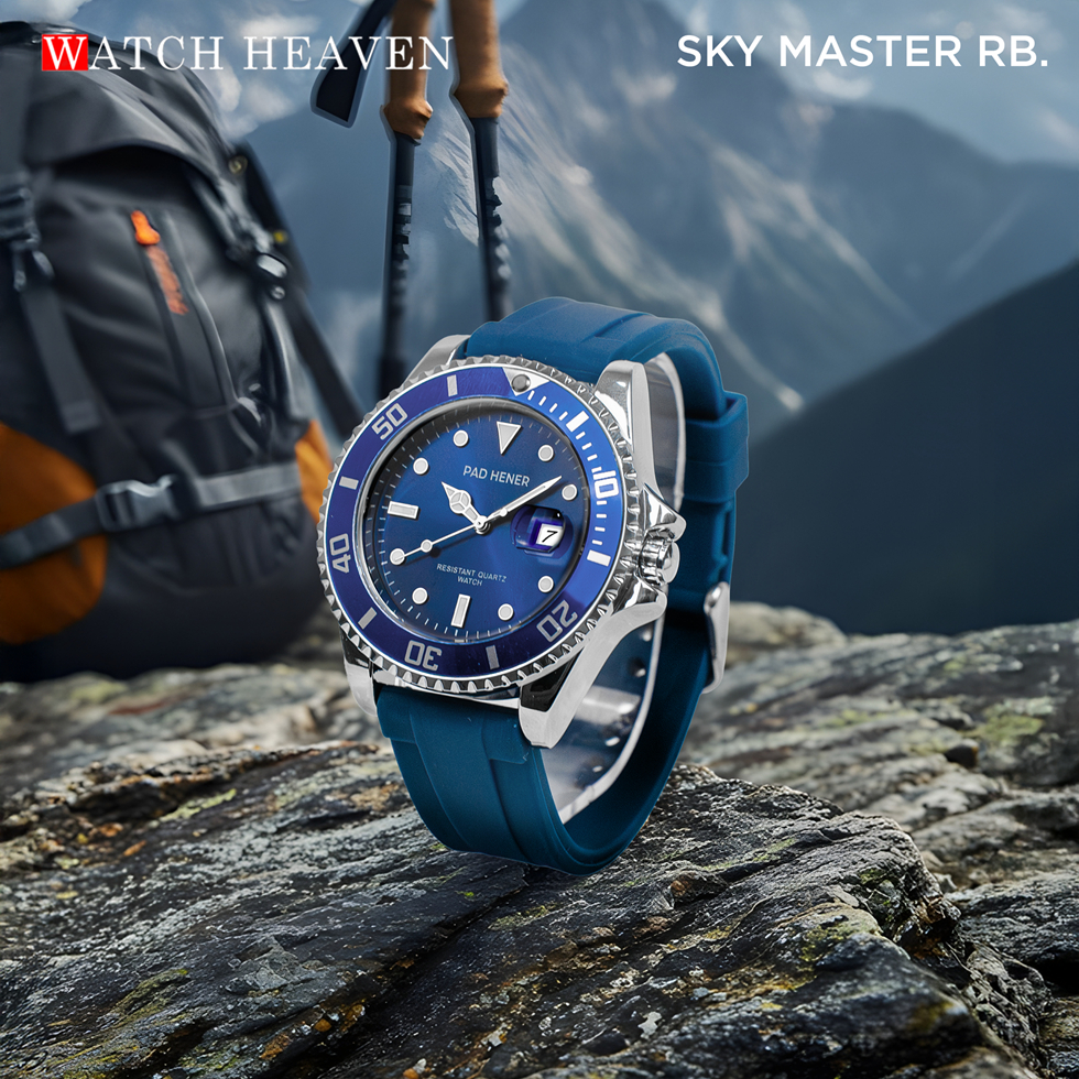 PAD HENER Sky Master Blue Rubber Jam Tangan Pria Anti Air Original Free Box
