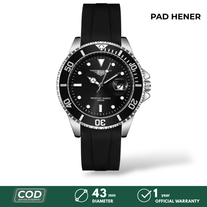 Jam Tangan Pria Wanita Pad Hener Sky Master Hitam Rubber Anti Air Original + Kotak |