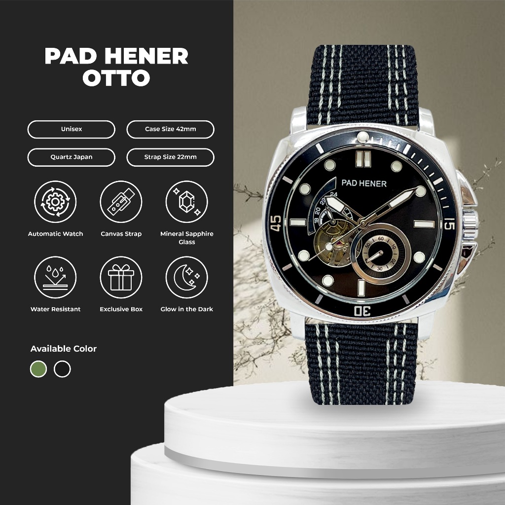 PAD HENER OTTO Jam Tangan Tanpa baterai Automatic Turbilon Anti Air Strap Kanvas Free Box Pad Hener