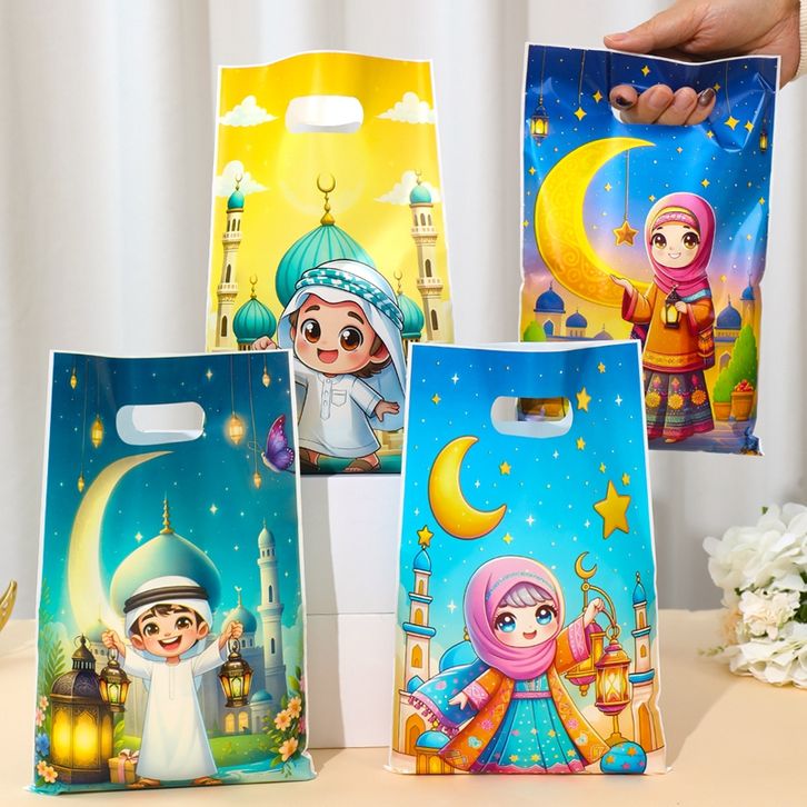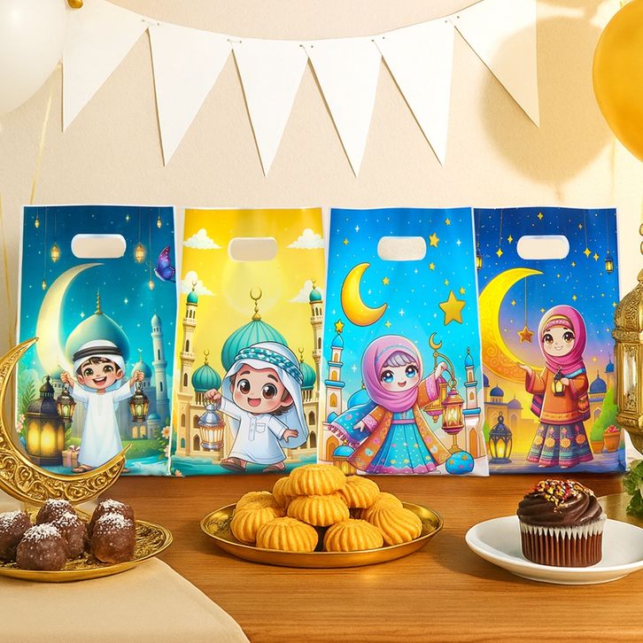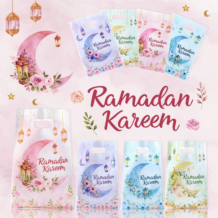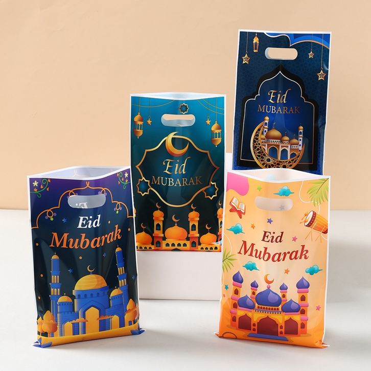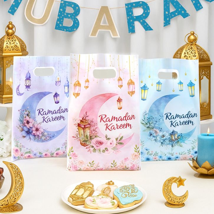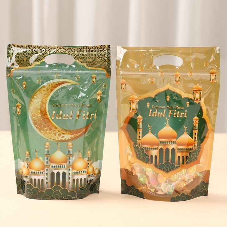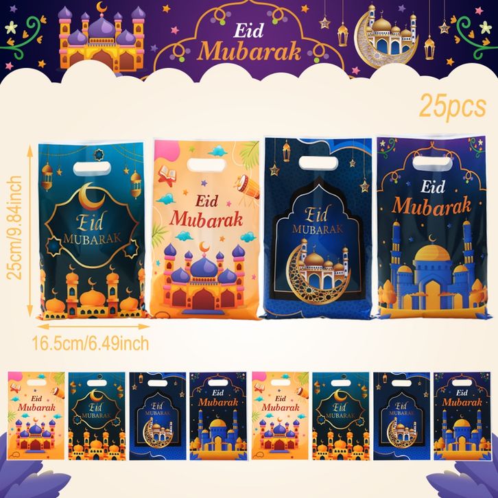 Tas Lebaran Souvenir Idul Fitri 25Pcs Bingkisan Snack Plastik Motif Masjid Warna Campuran Cocok Untuk Acara Ramadan