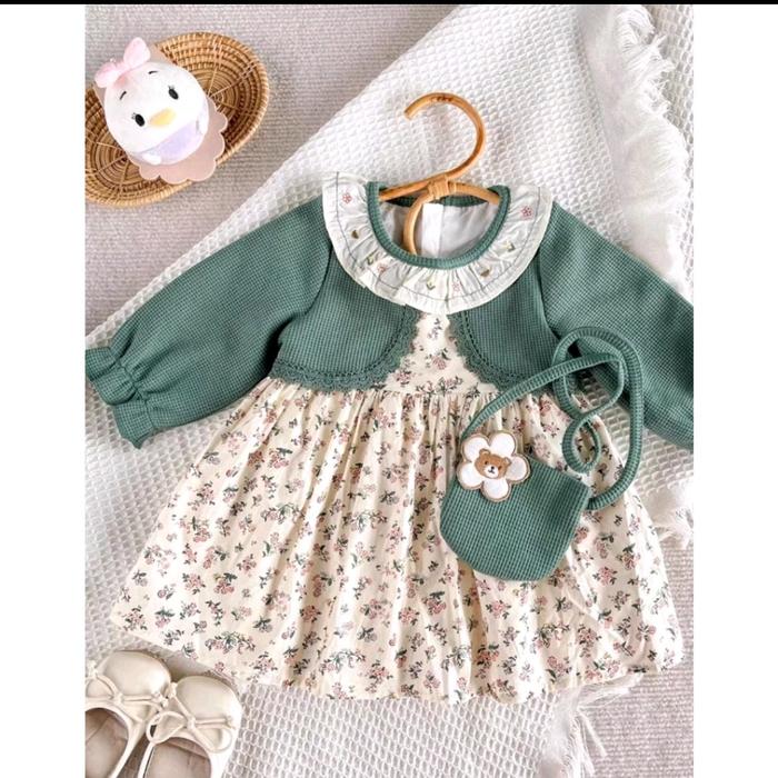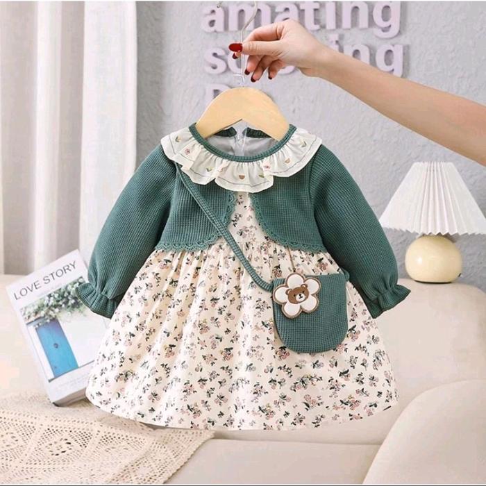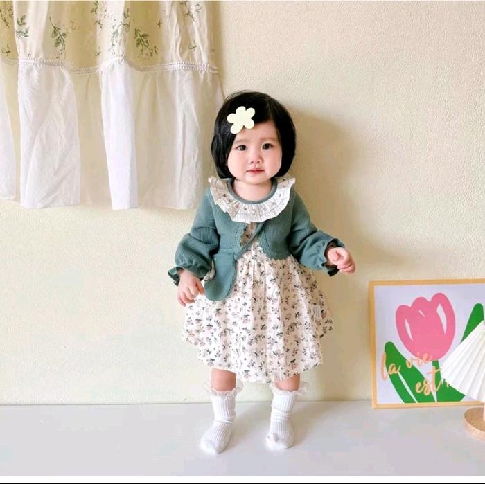Dres Bunga Anak Perempuan-Gaun Anak Perempuan -Over Oll Anak Perempuan Usia 3 Bulan-4 Tahun Perempuan - Pink, S/M=Usia 3