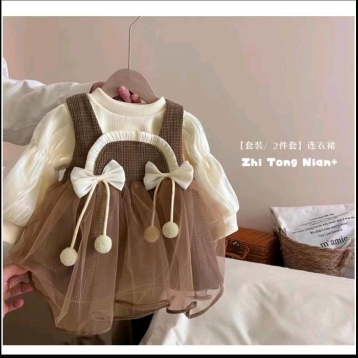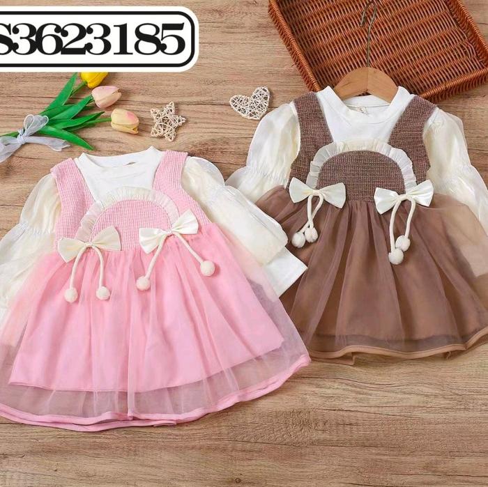 Rika Dres -Gaun Anak Perempuan Premium Bkk Usia 3 Bulan - 4 Tahun - Coklat, S= Usia 3-12 Bulan