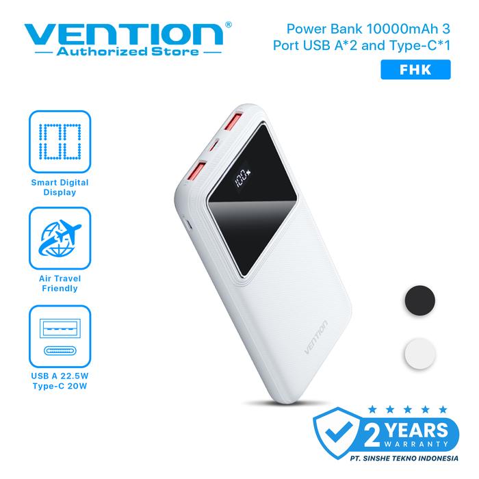 Vention Powerbank Fast Charging Led Display Qc Pd Usb Type C 10000Mah 20000Mah 30000Mah - Fhk, Black