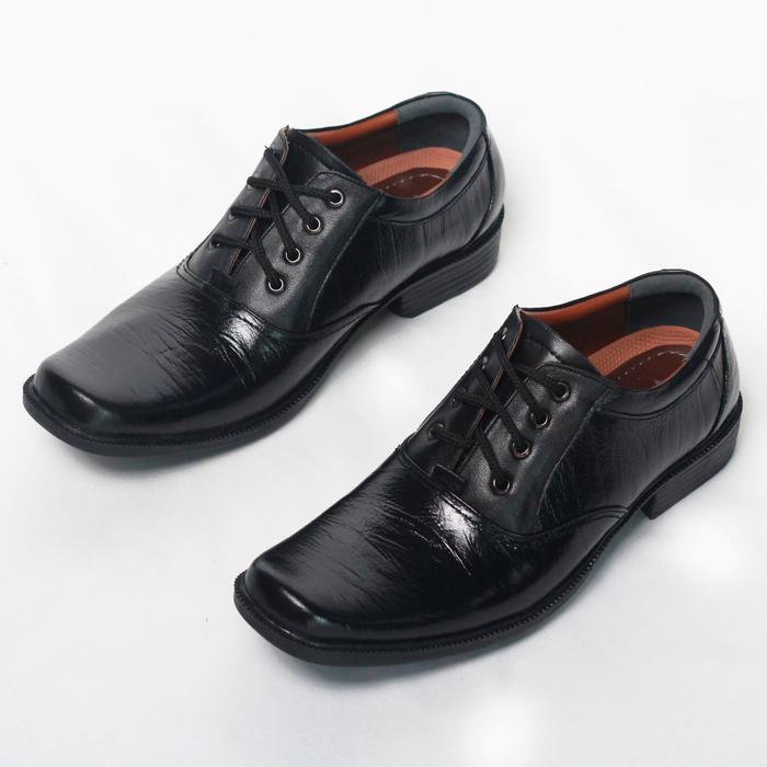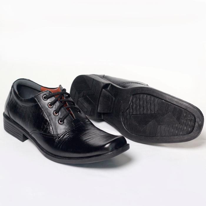 Sepatu Pantofel Tali Kulit Sapi Asli Original Velko Kerja Shoes Pria - Hitam, 39