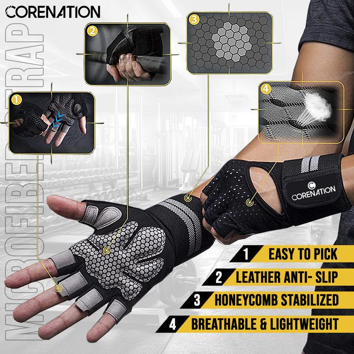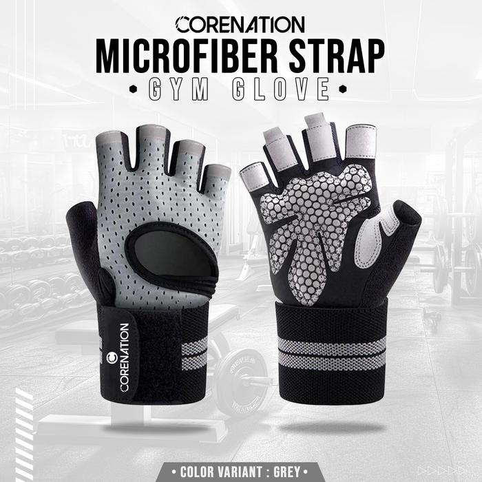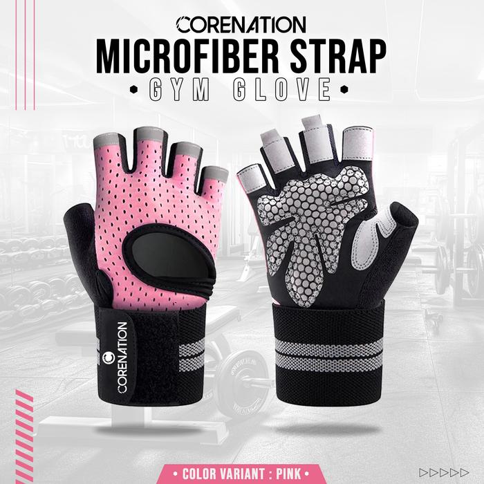 Corenation Active Glove Fitness Gym Microfiber Long Strap Sarung Tangan Fitness Gym Olahraga - Black, S