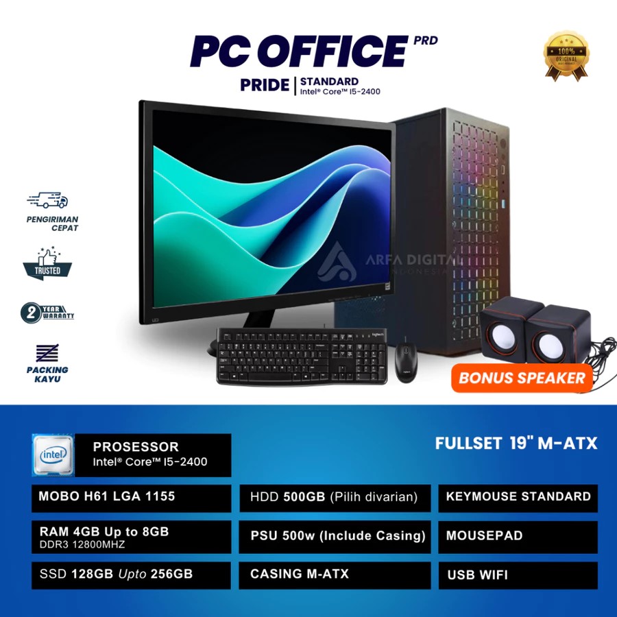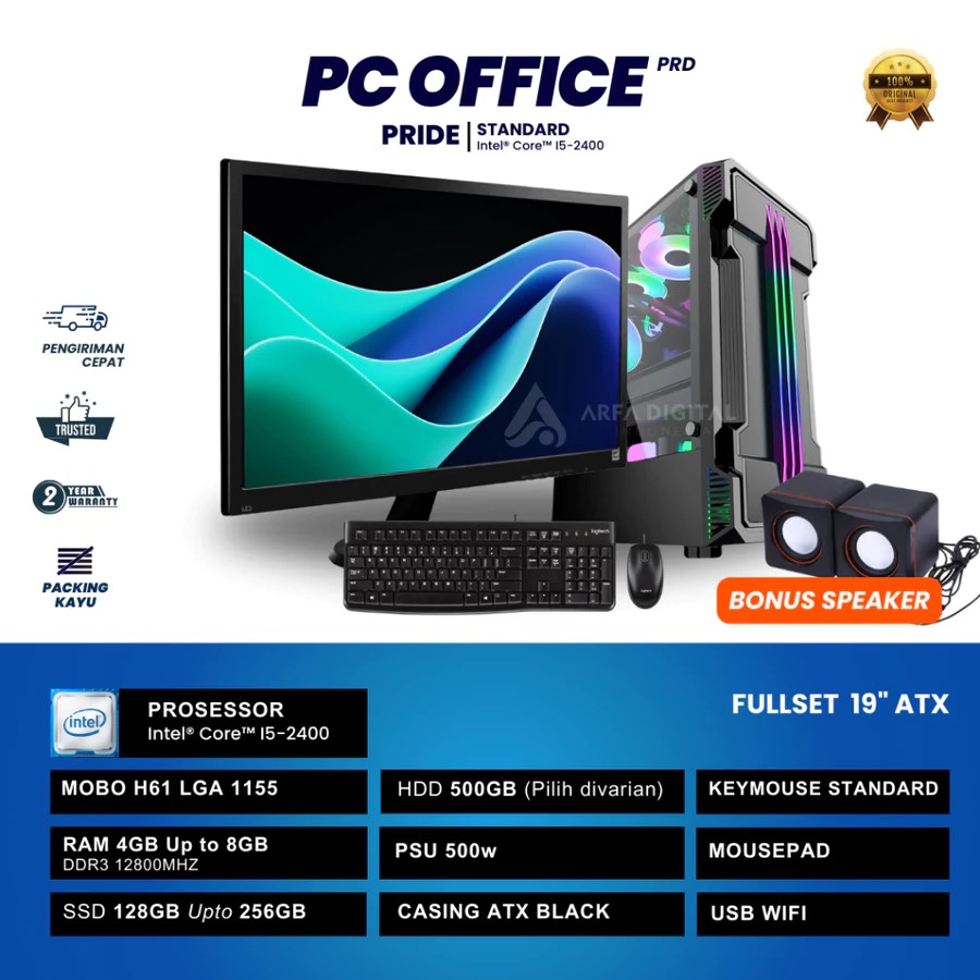 Komputer PC Gaming FullSet Murah Intel core i7 Ram Ram 16 gb Ssd 240 gb HDD 500GB LED 19" Cocok Buat Office Siap Pakai