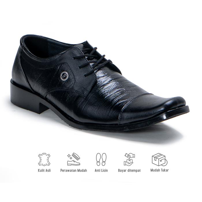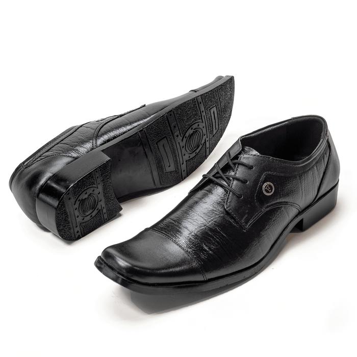 Sepatu Pantofel Pria Bahan Kulit Sapi Asli Model Tali Formal F-2207 - Hitam, Size 38