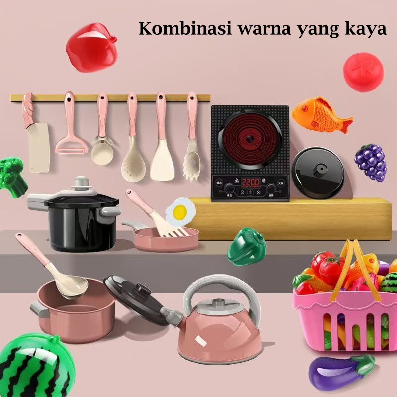 Mainan Dapur Anak Perempuan 108Pcs Set Simulasi Masak Masakan, Potong Buah Sayur Hadiah Edukasi Anak