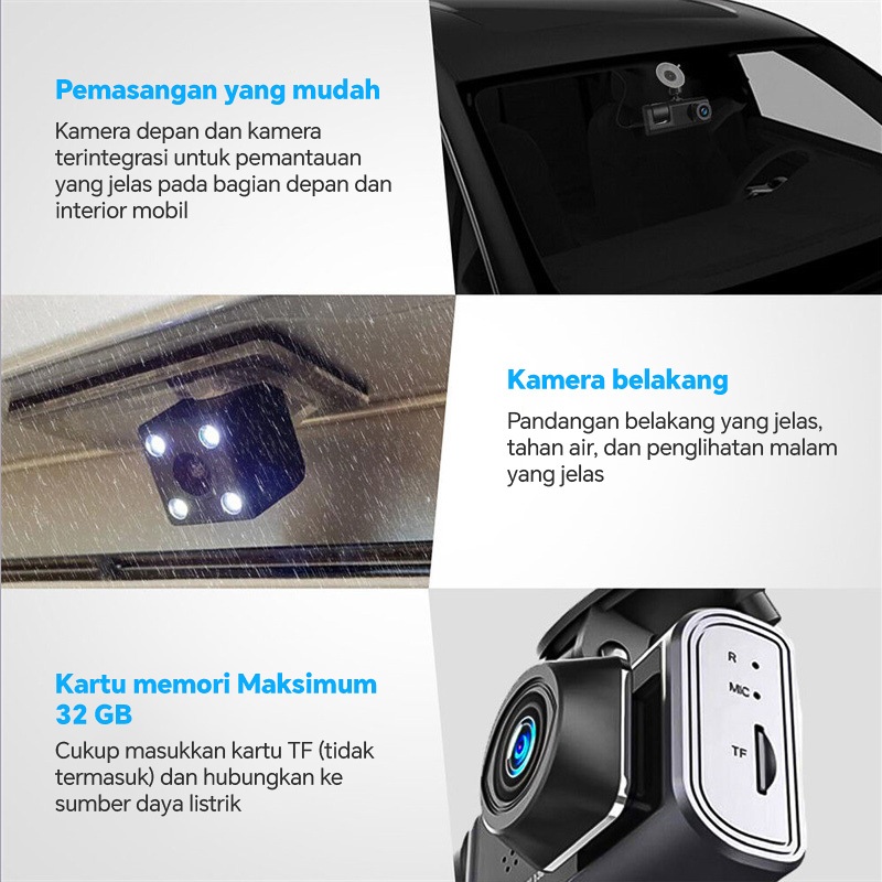 3Lensa Dasbor Mobil 1920P Hd Lensa Tiga Layar Sentuh Loop Penglihatan Malam Sensor Gravitasi Dashcam Mobil 3 Kamera Full