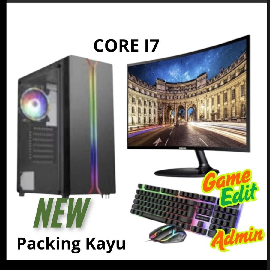 Komputer PC Gaming FullSet Murah Intel core i7 Ram Ram 16 gb Ssd 240 gb HDD 500GB LED 19" Cocok Buat Office Siap Pakai