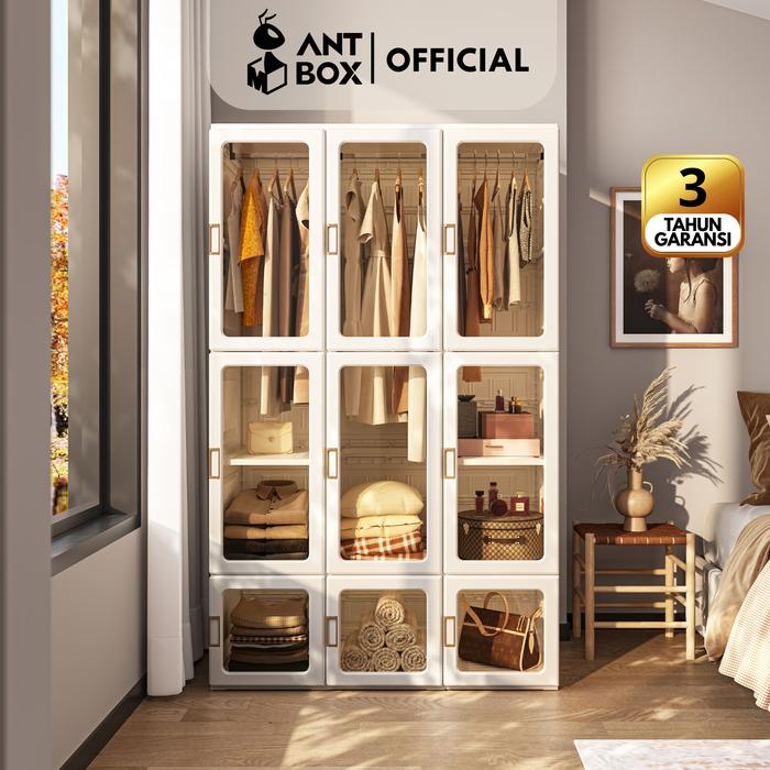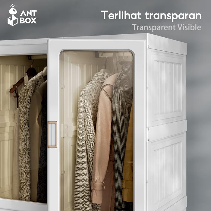 Antbox Lemari Pakaian Plastik 6-15 Box Dengan Hanger Dan Storage Box | Lemari Baju Lipat Pintu Transparan Minimalis Dan