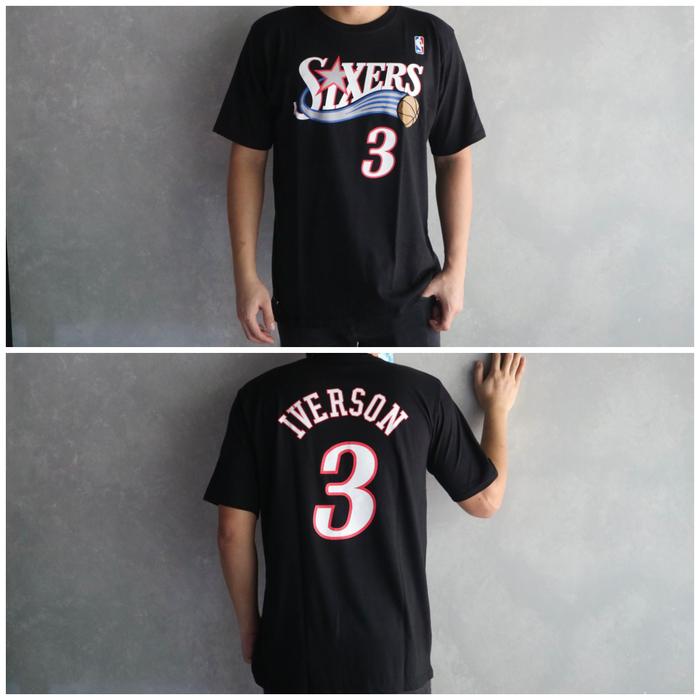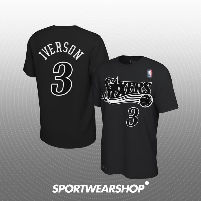 Tshirt Basket Nba Classic Philadelphia Sixers No 3 Allen Iverson Black - Hitam, M