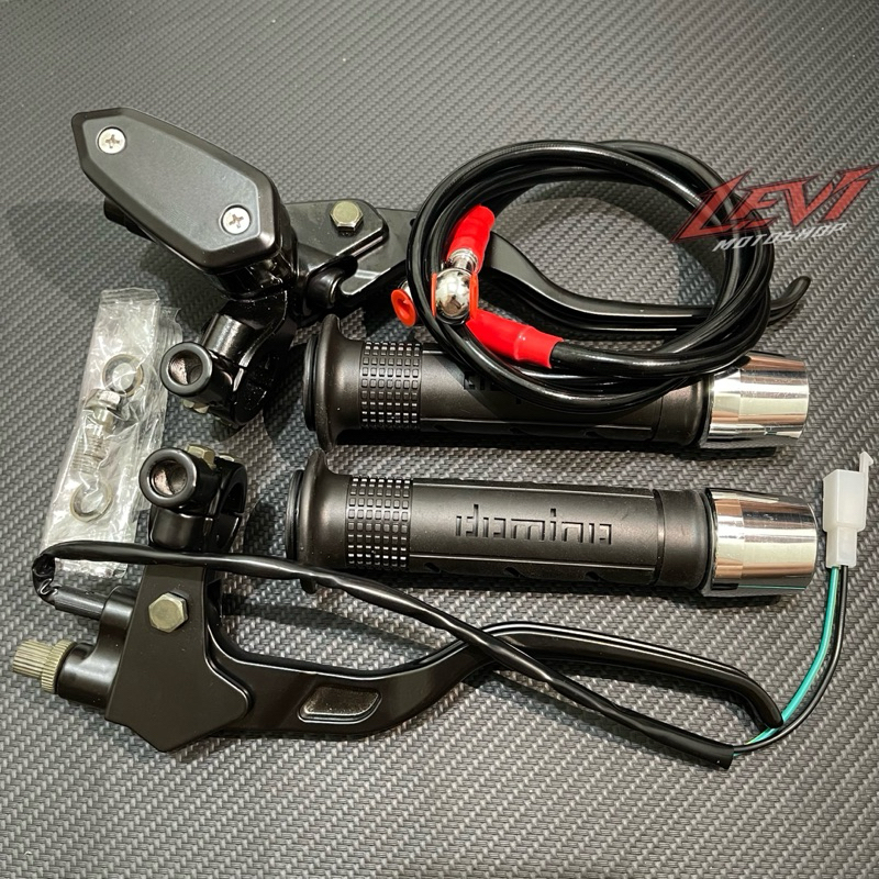 [Star] Paket 4in1 Master Rem Tabung Tipe Oval + Handgrip Sisik + Jalu Stang Chrome + Selang Rem 95cm Universal Motor