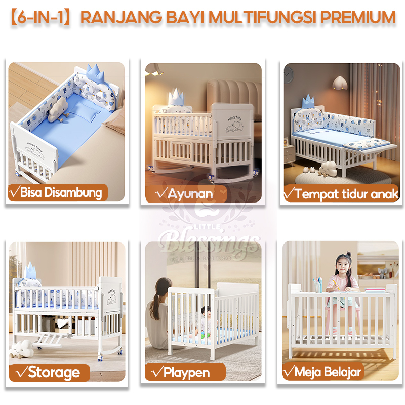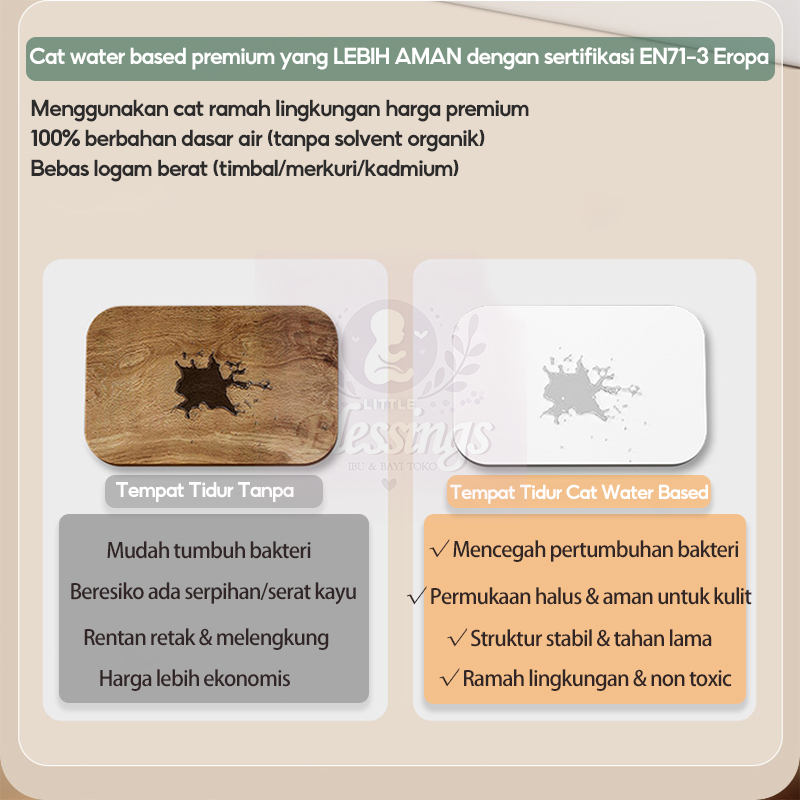 [Star] Impor Box Bayi Ranjang Bayi Kayu Solid - Cat Air Putih Non Toxic Tempat Tidur Bayi Fitur Ayunan