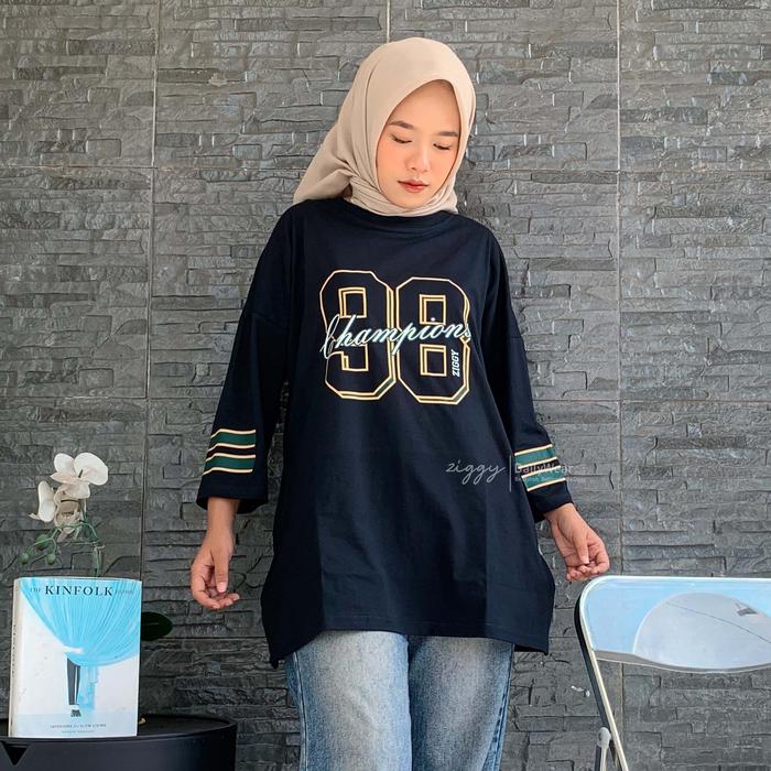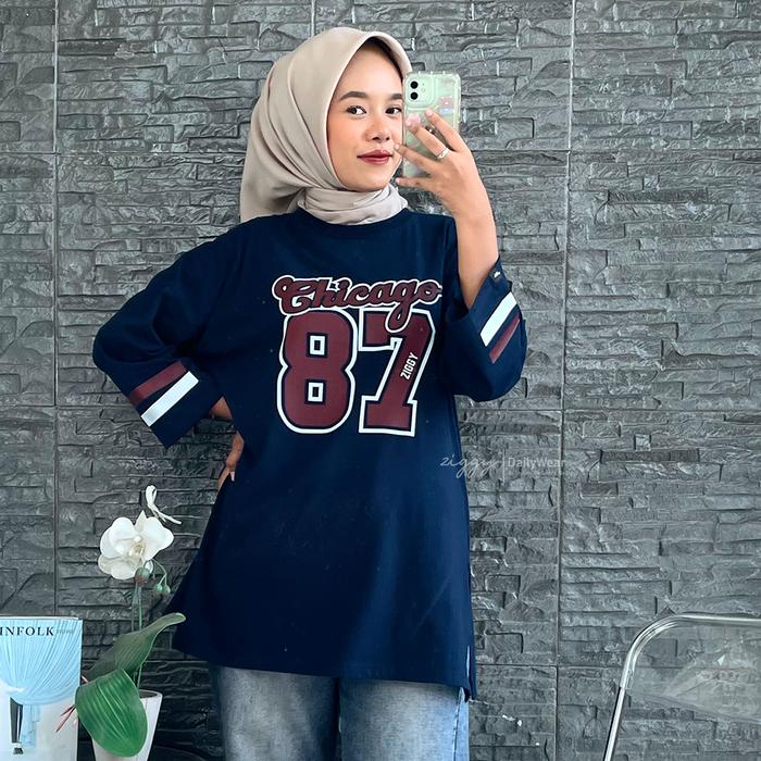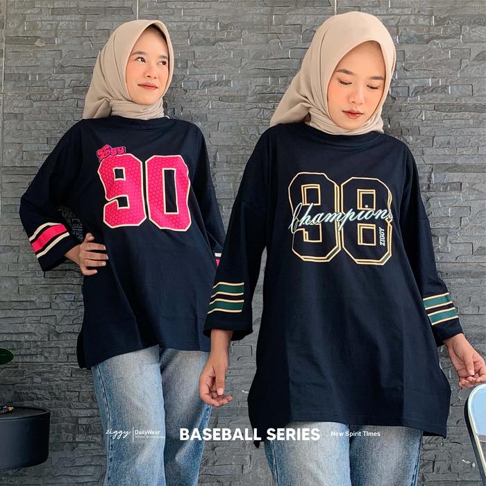 Kaos Baseball Wanita Oversize Atasan Sporty Baju Jersey Baseball Jumbo Bangkok Style Cotton Combad By Ziggy Combed Nyama