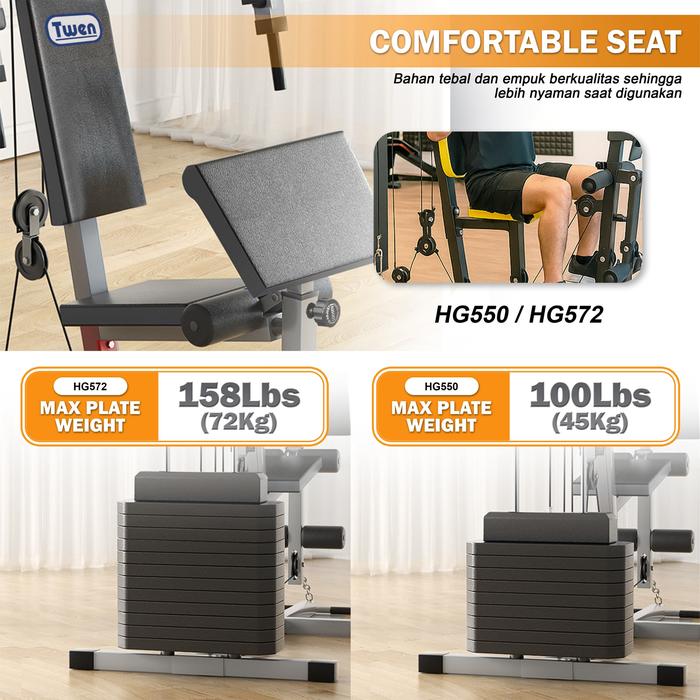 Home Gym Twen Hg550 Hitam 1 Sisi Dan Termurah Alat Fitness - Hg550 (Tanpa Paket), Packing Normal