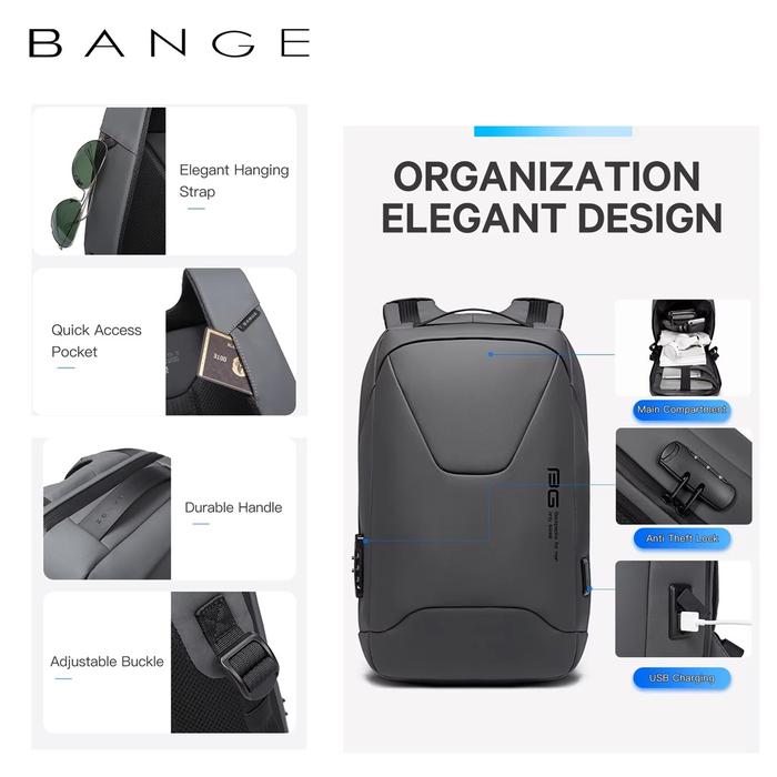 Bange Tas Ransel Pria Tas Laptop Tas Kerja Pria Backpack Bg22188 Hitam - Hitam