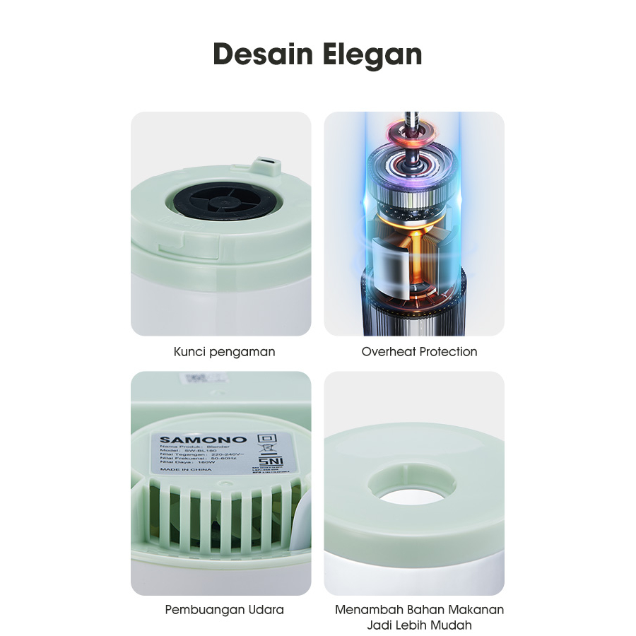 Samono Blender Mini Portable Chopper Multifungsi Low Watt 4 Mata Pisau Garansi Resmi 1 Tahun SW-BL180