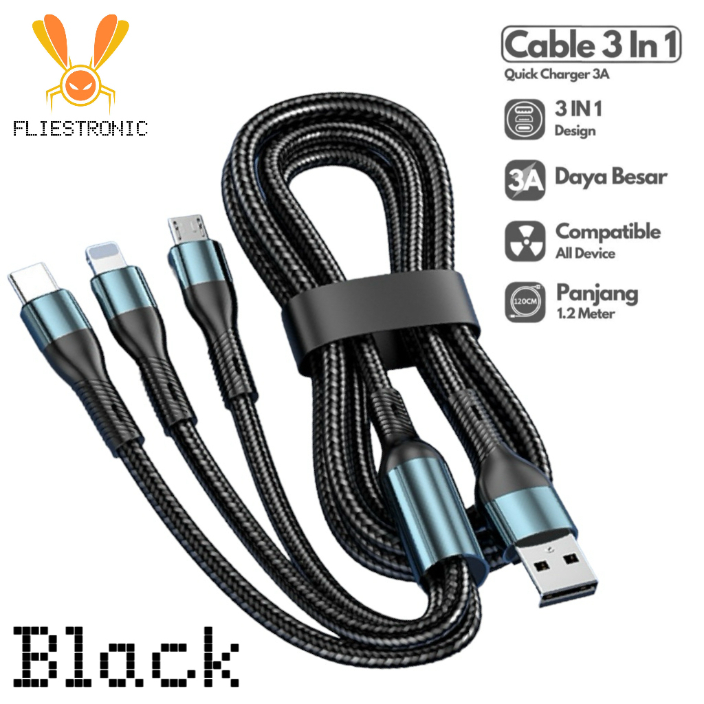FLIESTRONIC Car Charger Full Set Kabel 3 in 1 / Colokan Cahrger Mobil / Pengisi Daya 2 Ports Type C USB
