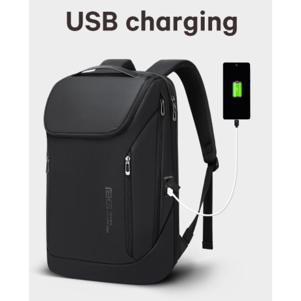 Bg2517 Tas Bange Bag Ransel Kerja Kantor Cowok Laptop 15.6 Ipad 12.9 Usb Solid Shape - Black