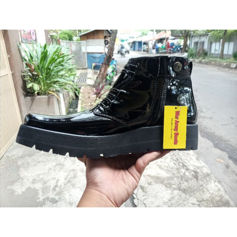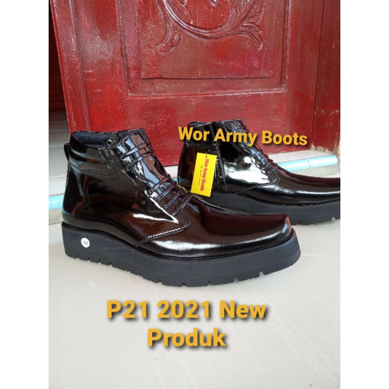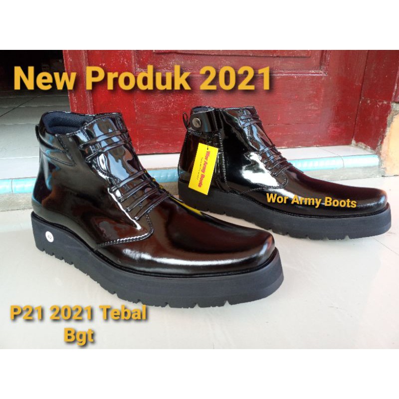 Sepatu Pdh kulit kilap model P2021 sol TEBAL bgt 3-5cm real Pict 100 PERSEN harga Size 38-46 By Wor Army Boots