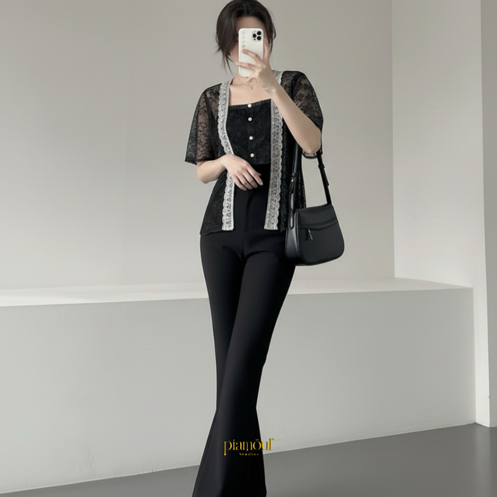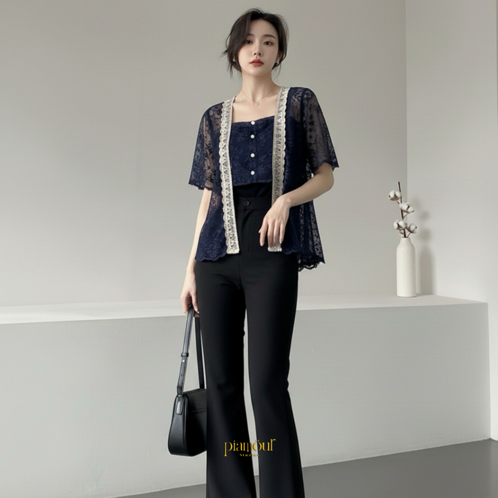 Paket 5in1 HANA T0P Kebaya Kutubaru Modern Brukat Lace Tile Premium Kekinian Elegan Baju Kondangan Wanita One Set Rok Li