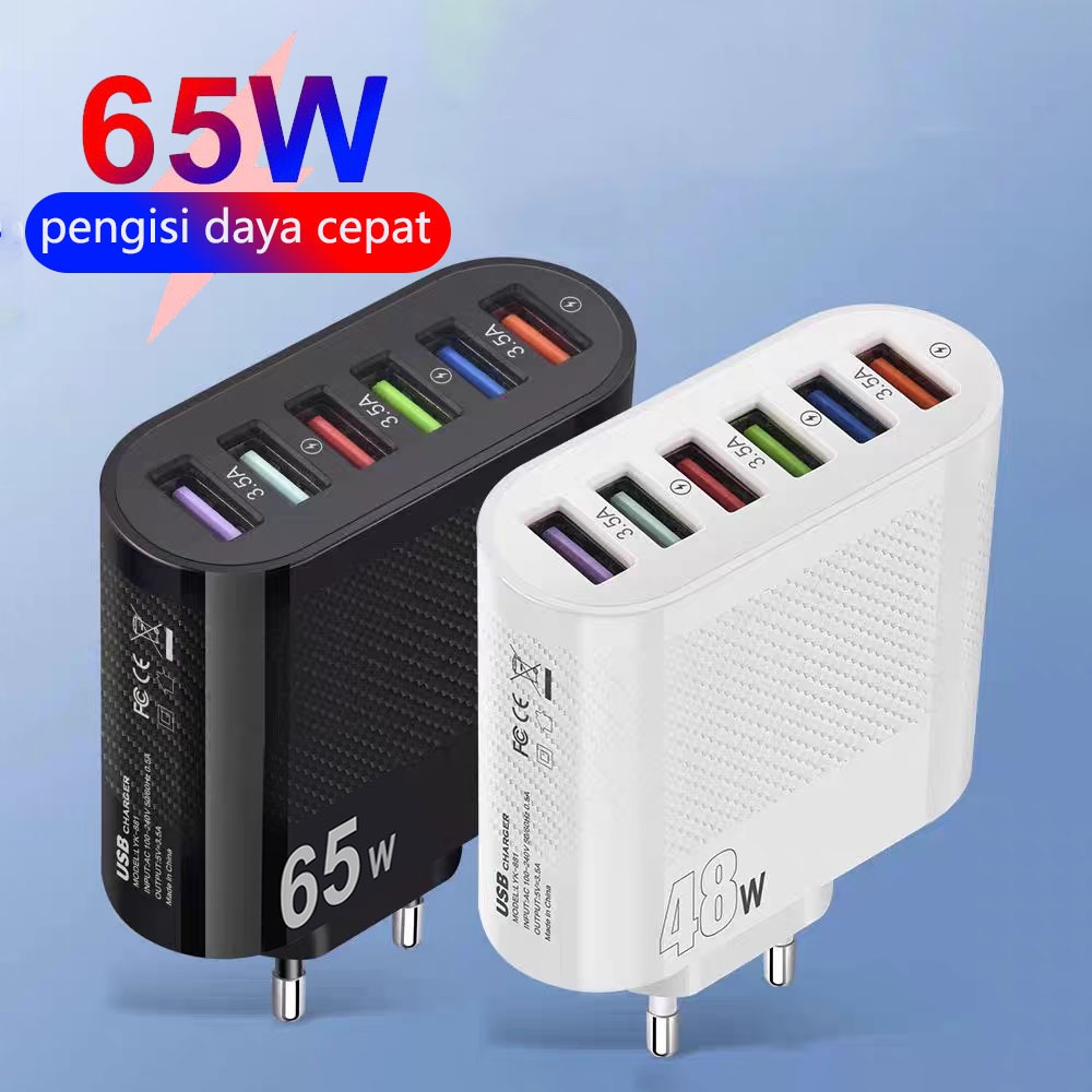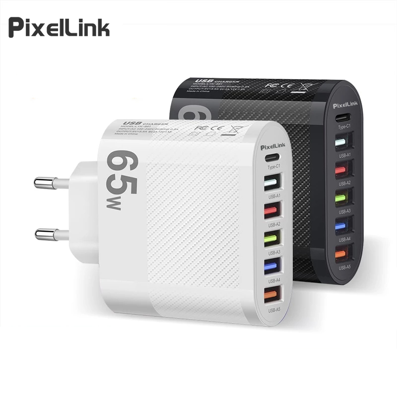 PixEILink 65W 5USB Adaptor Charger Fast Charging USB Type C Universal Usb Port EU Plug Wall Charger