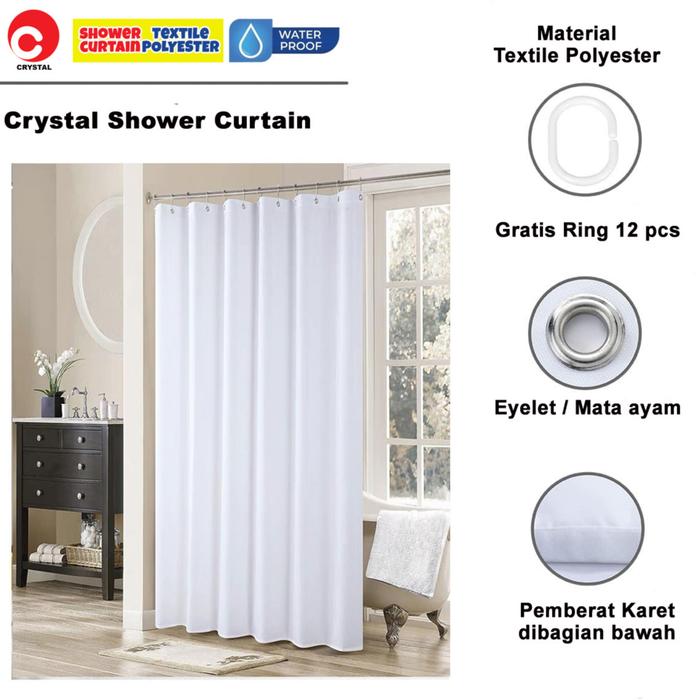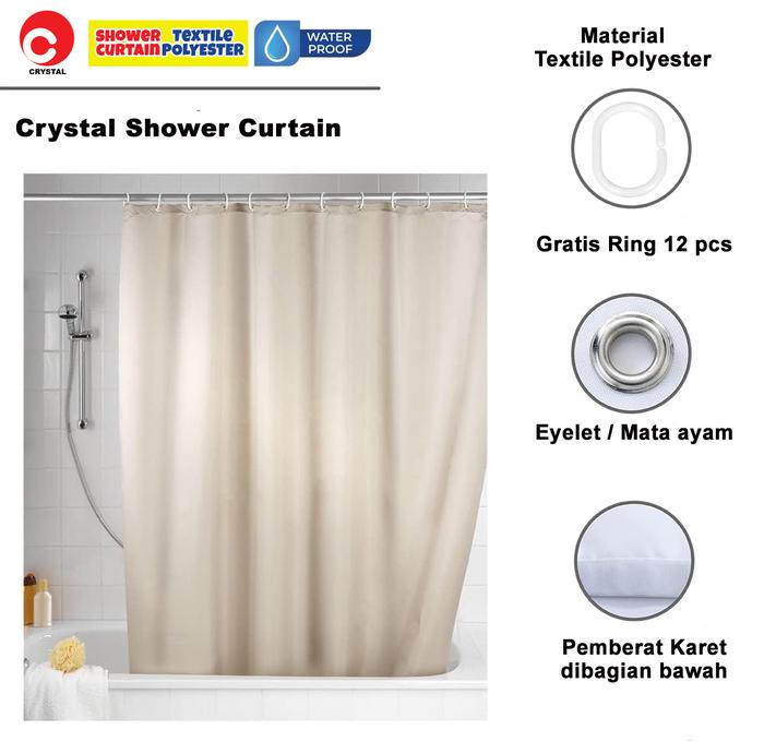 Crystal Kain Polyester Tirai Kamar Mandi Gorden Kamar Mandi Shower Curtain Hotel Polos - Polos Beige, L 180 X T 180