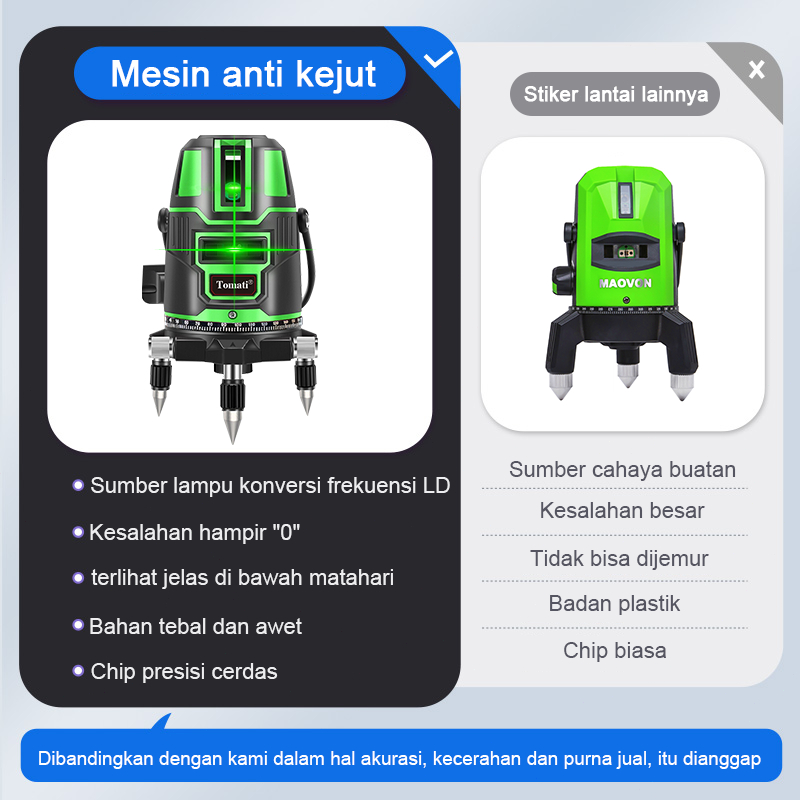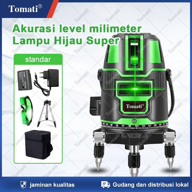 Tomati 2Line 5Line Laser Level Mesin Self Leveling 5 Line Laser Hijau Horizontal Vertikal 360 Derajat lengkap dengan alarm system