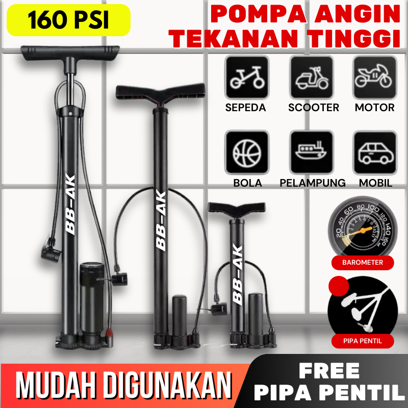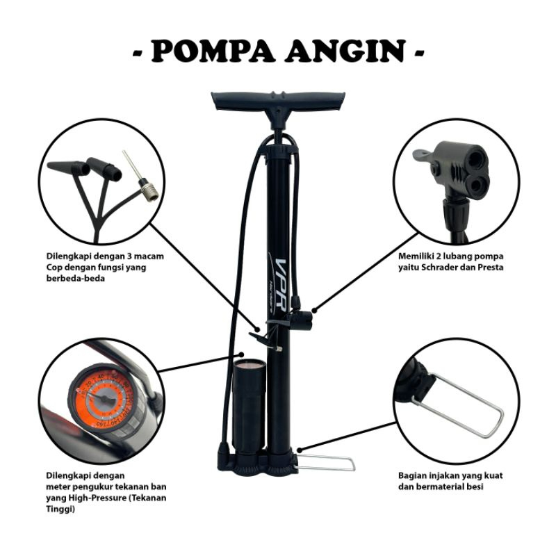 Pompa Angin Ban Sepeda Dan Motor Kompa Sepeda Meter Tekanan Manual Dual Pentil Alloy