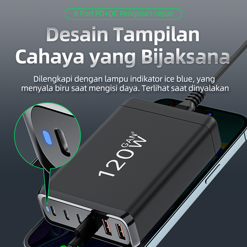 (HOT)BASIKE Charger iPhone Fast Charging 6-in-1 120W Adaptor Type C USB for mobile iPad PC laptop